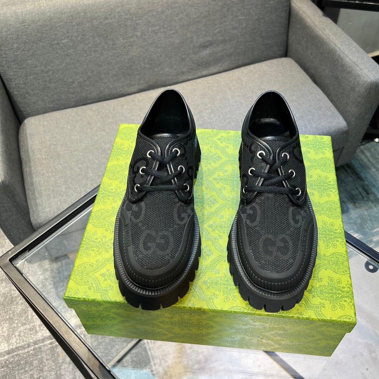 GG Men's 25 Sneaker Green Black Sheepskin 524270