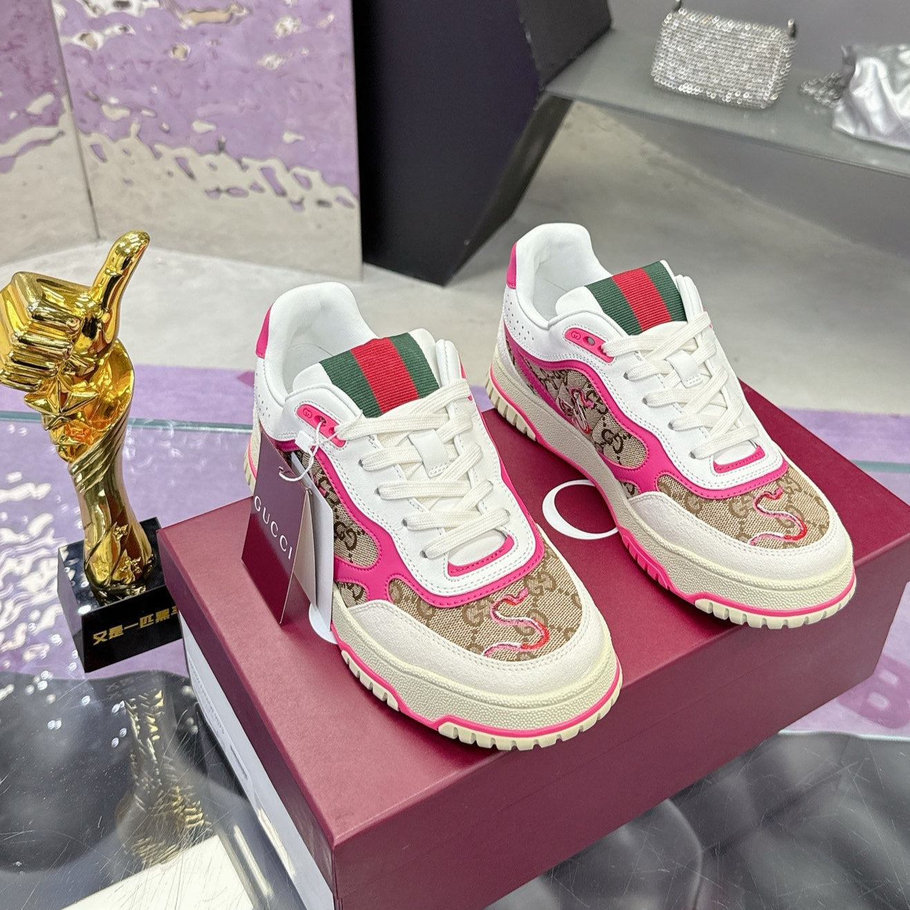 GG Men's 25 Snake Sneaker Brown Pink Cowhide 574716
