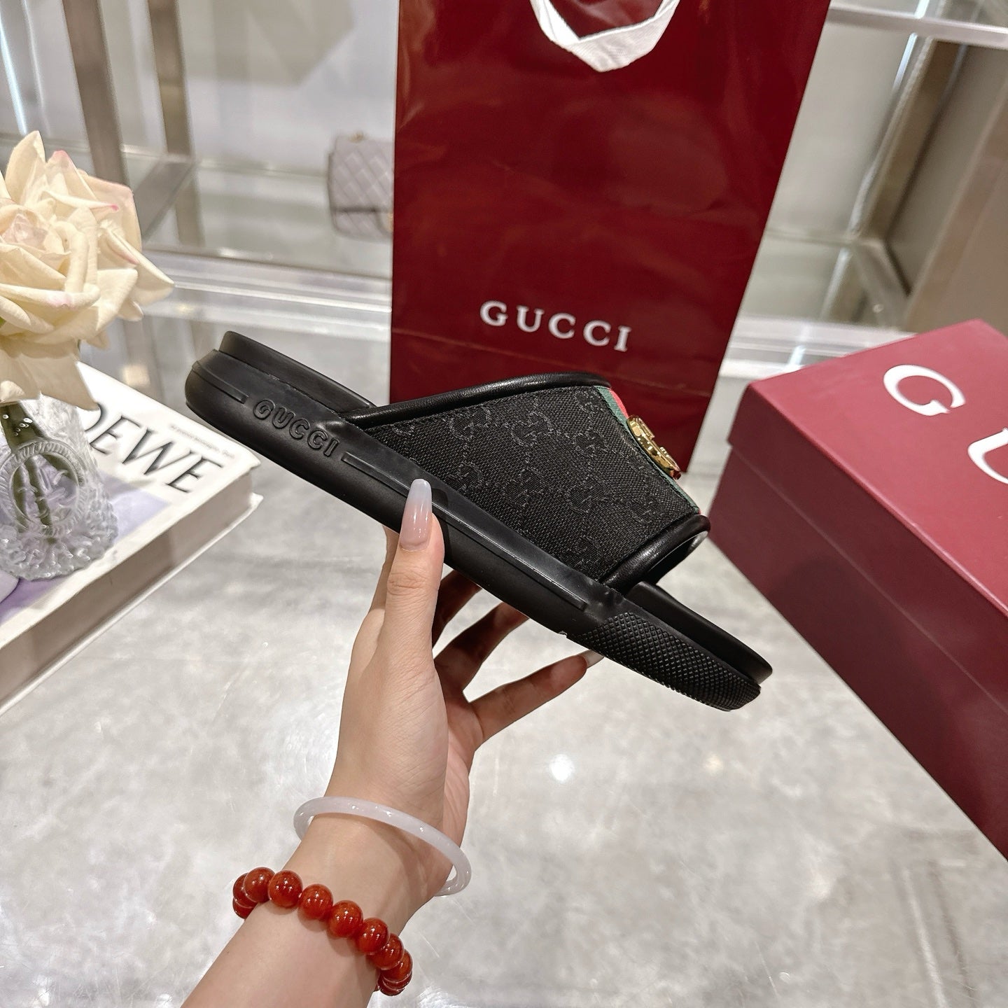 GG Men's 25 Monogram Slide Black Calfskin 540246