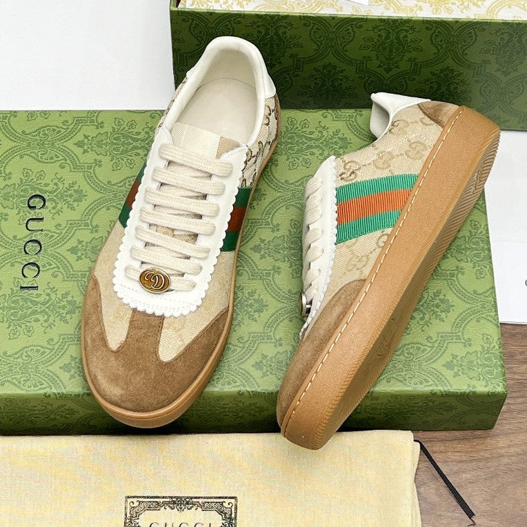 Gucci 2025 G74 Sneakers Brown Beige Suede Canvas 885901