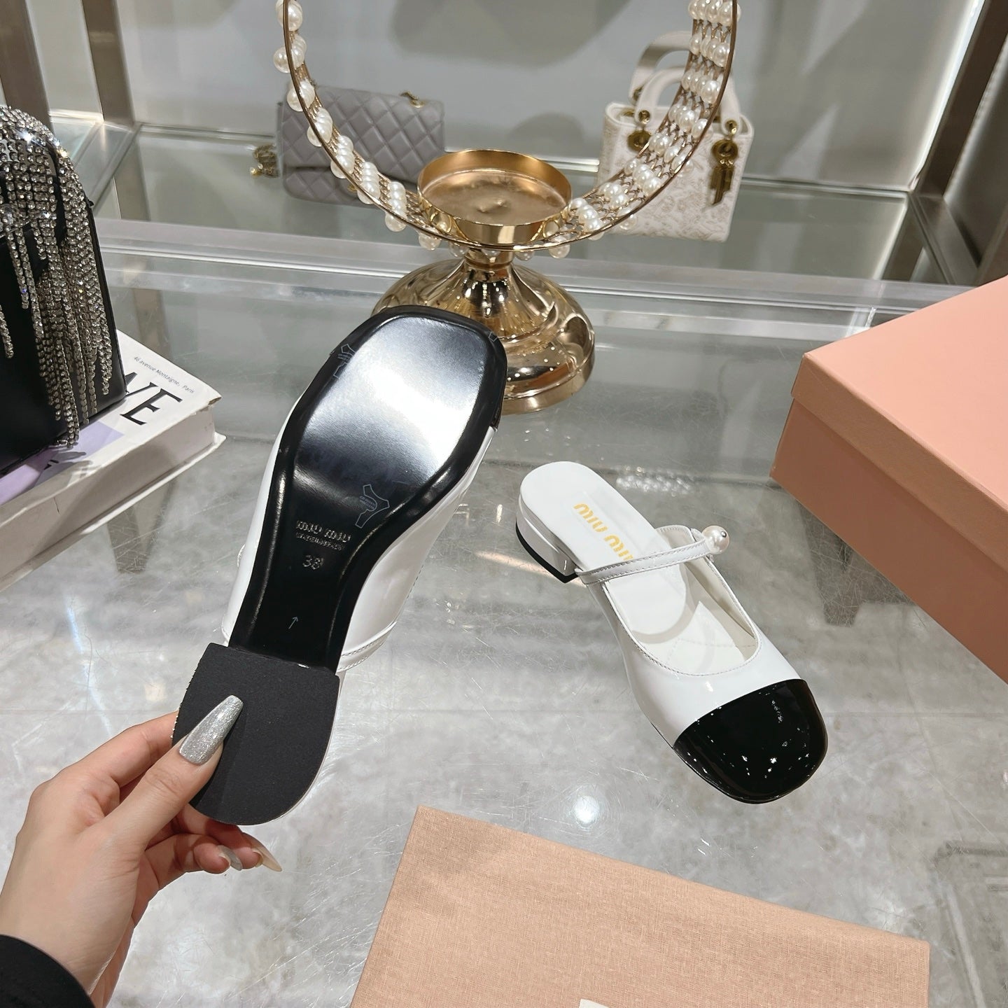 Miu 25C Flat Mule White Patent Leather 235306