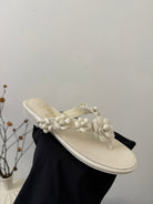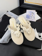 CC 25 Flower Thong Slippers White Cowhide 233415