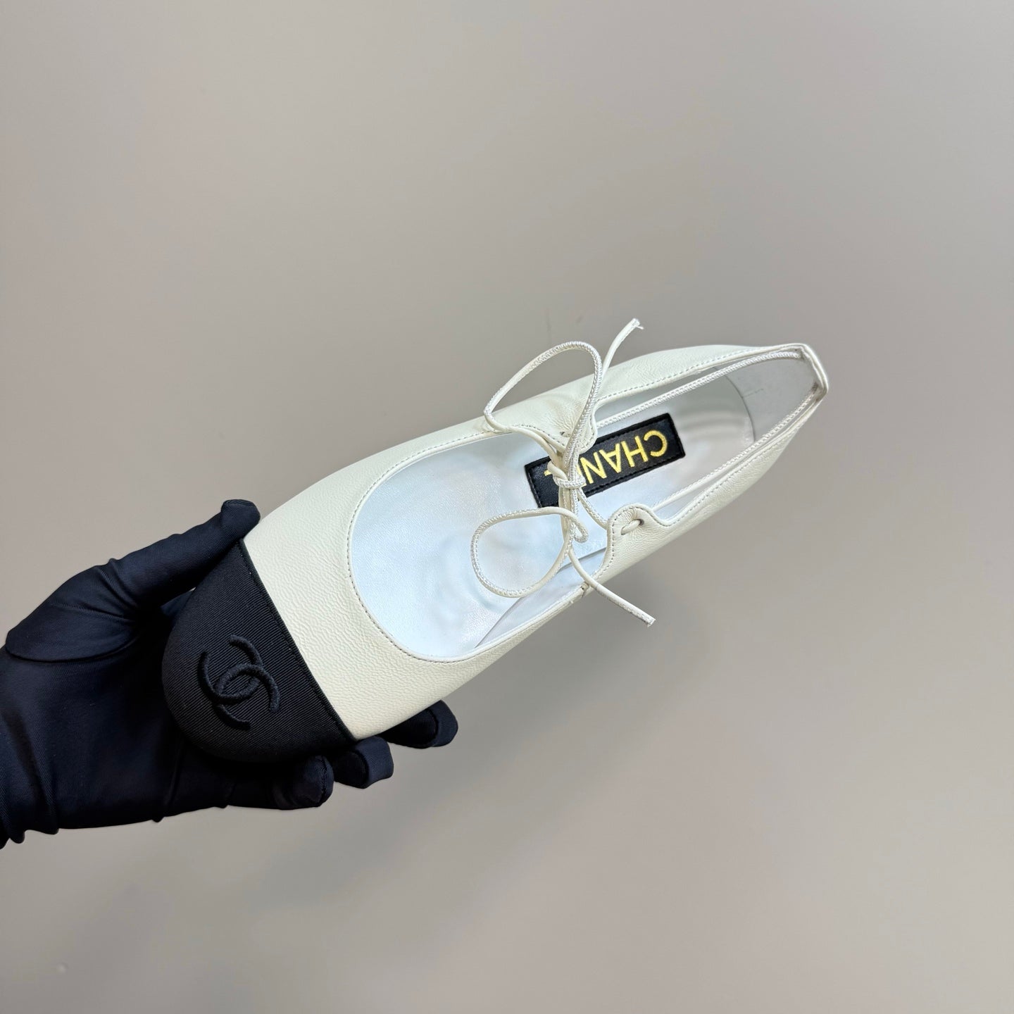 CC 25 Mary Jane Flat Beige Cream Leather with Fabric 239407
