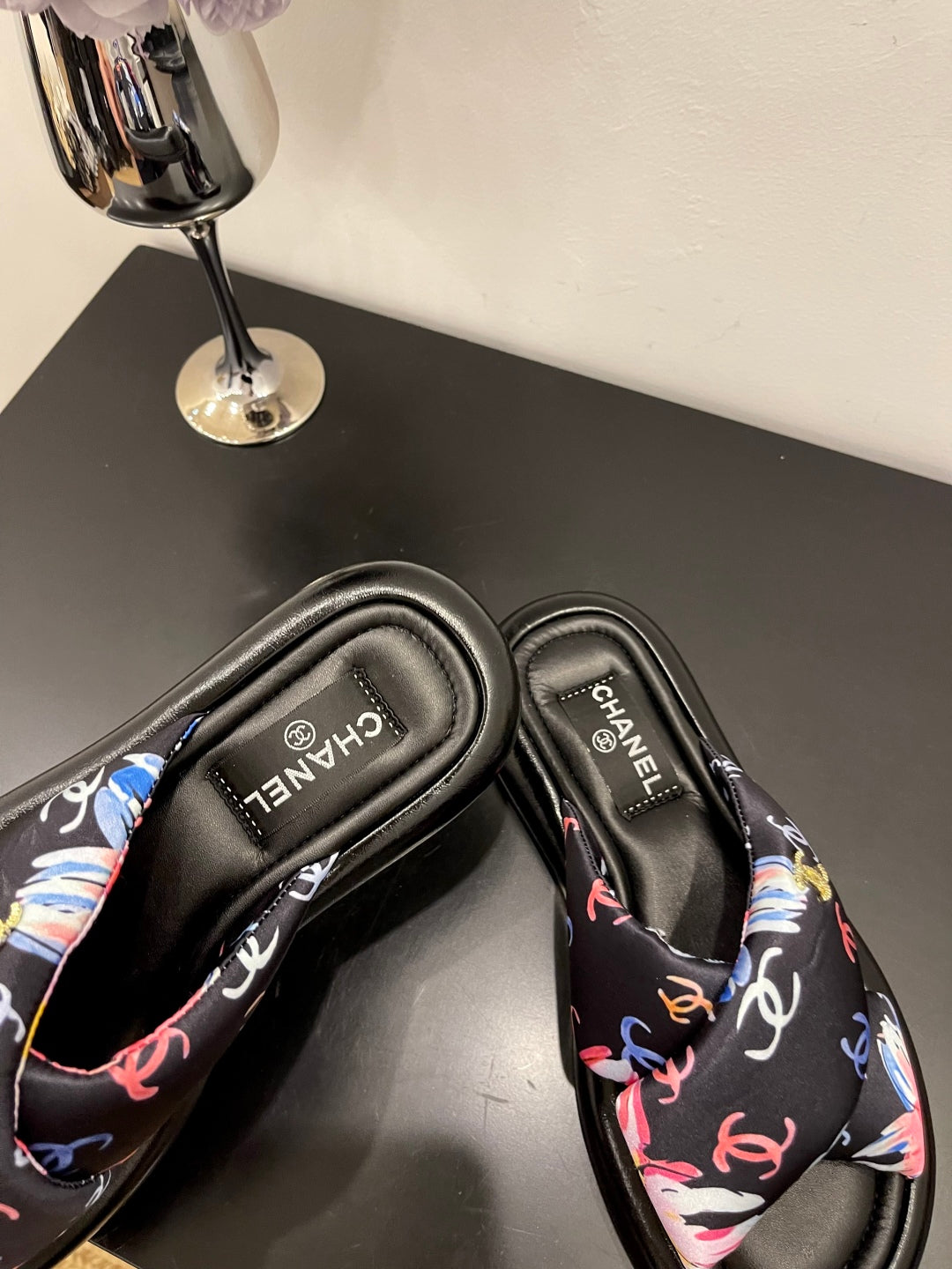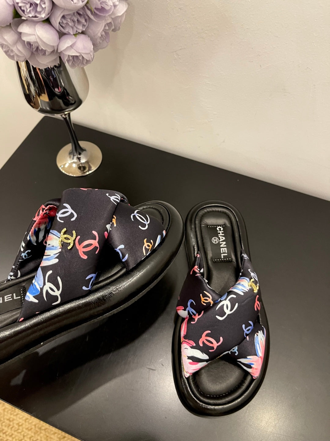 CC 25 Platform Slide Black Cloth Sheepskin 334738