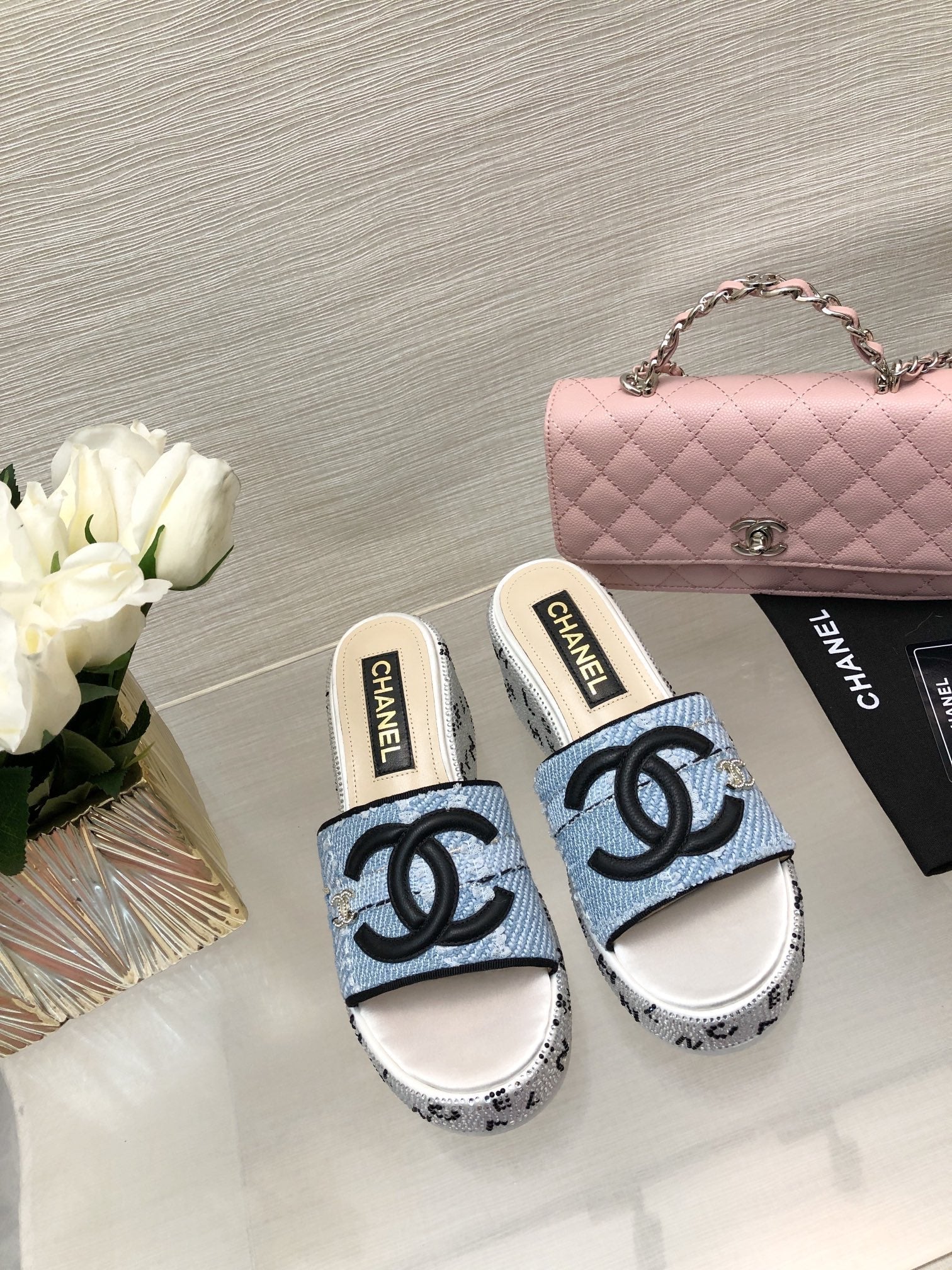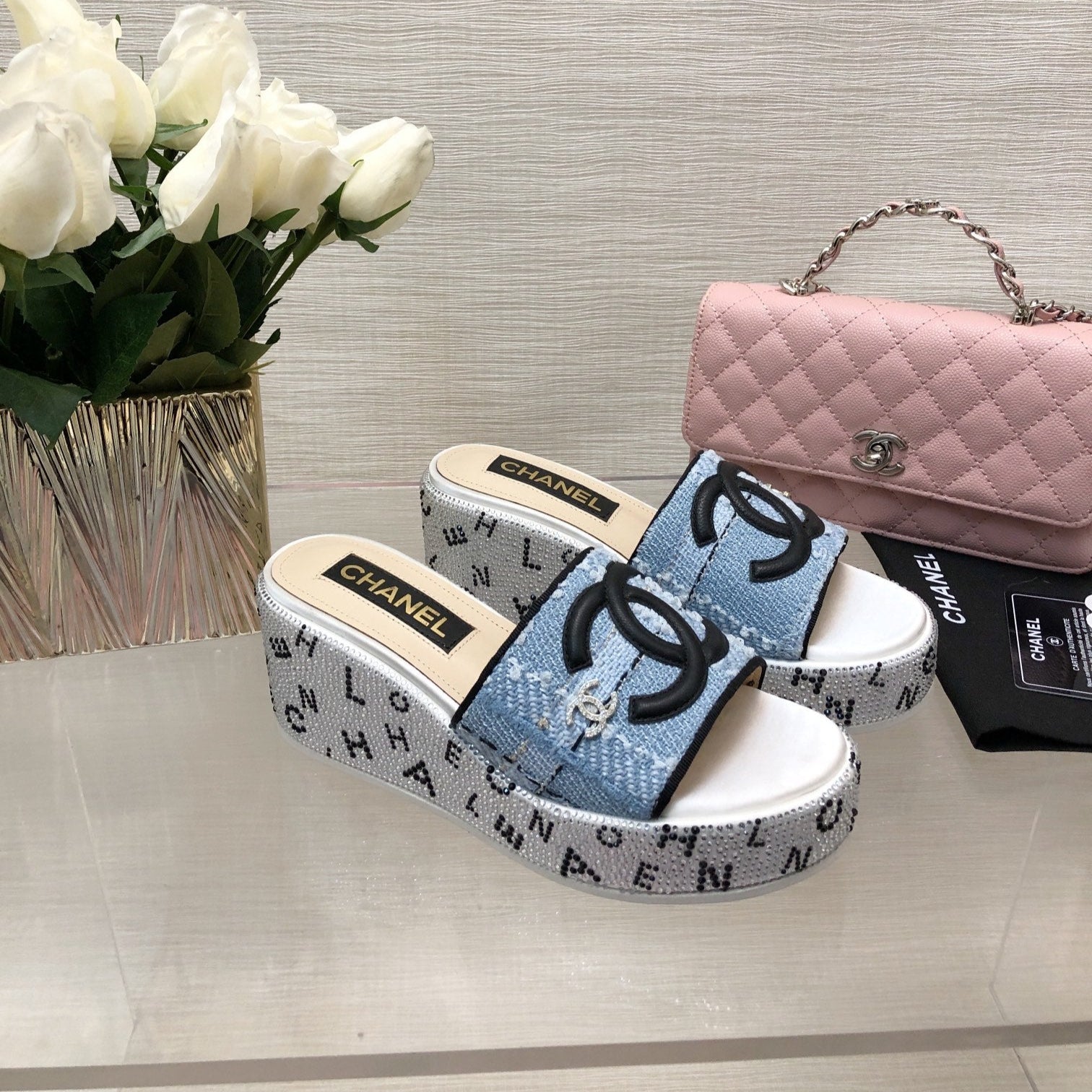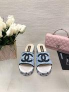 CC 25C Platform Slide Sandals Steed Blue Fabric 213131