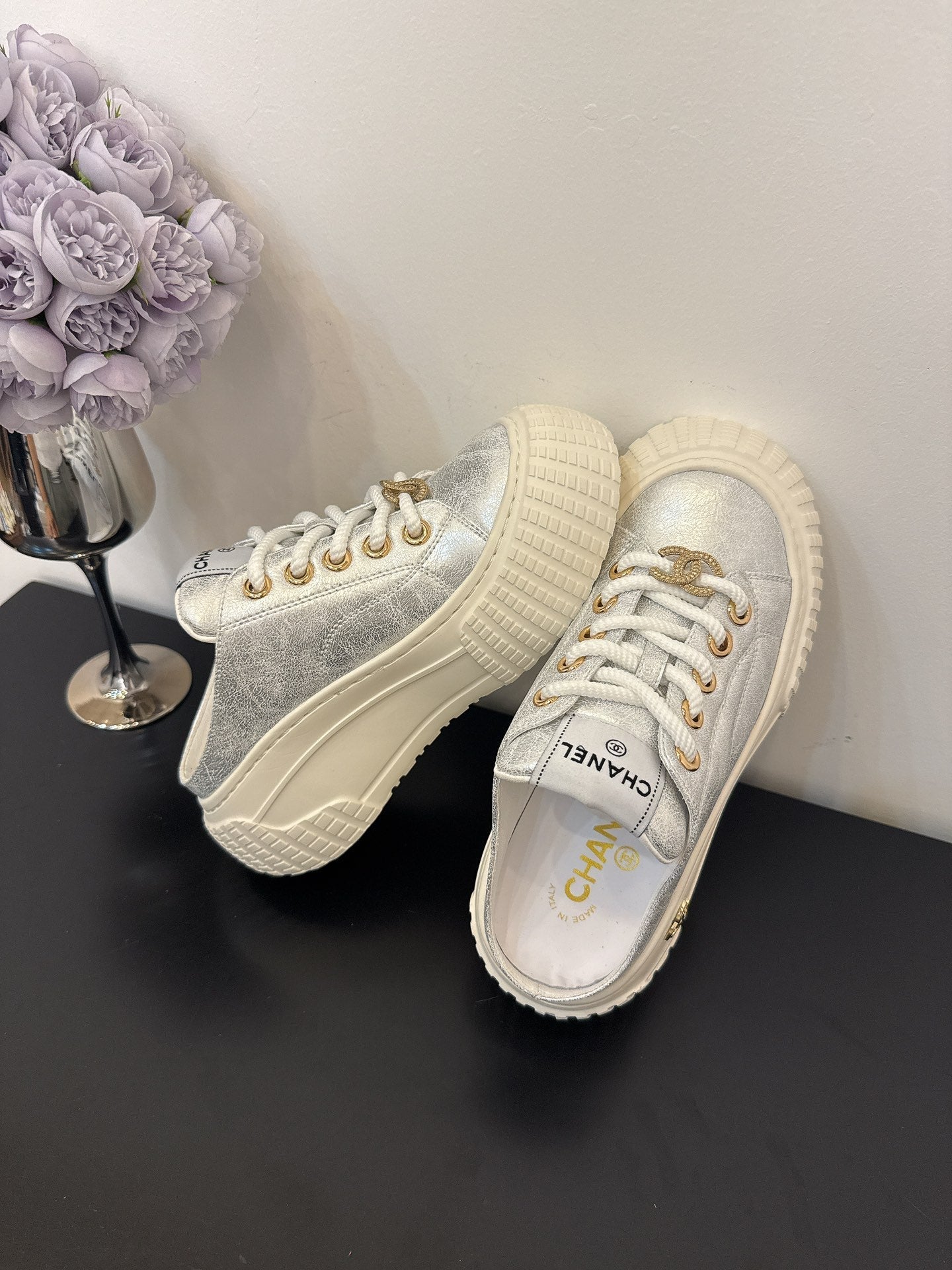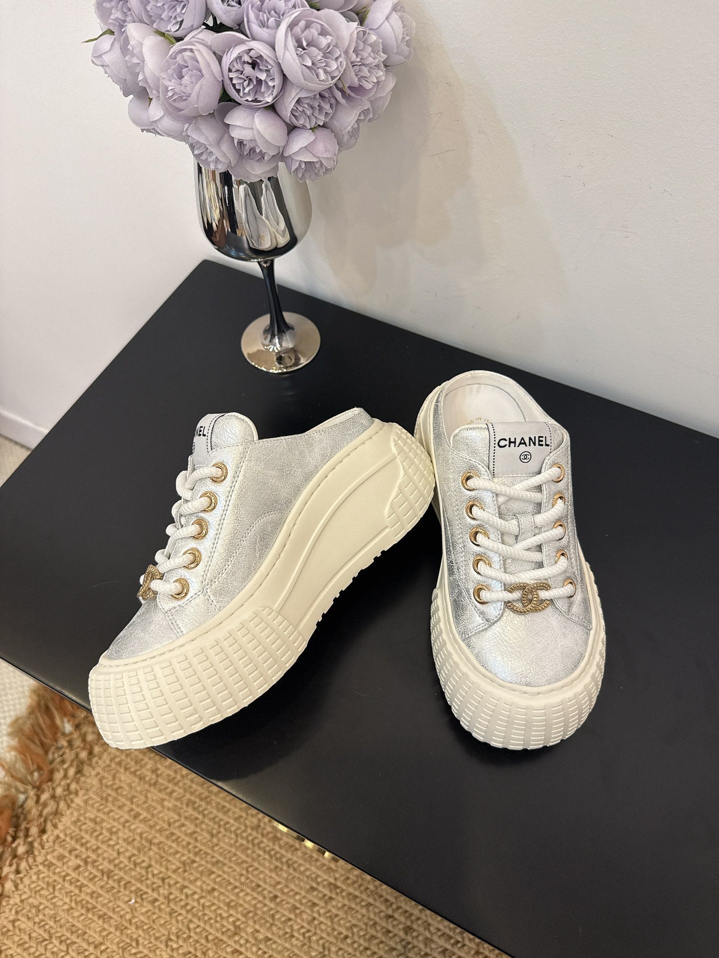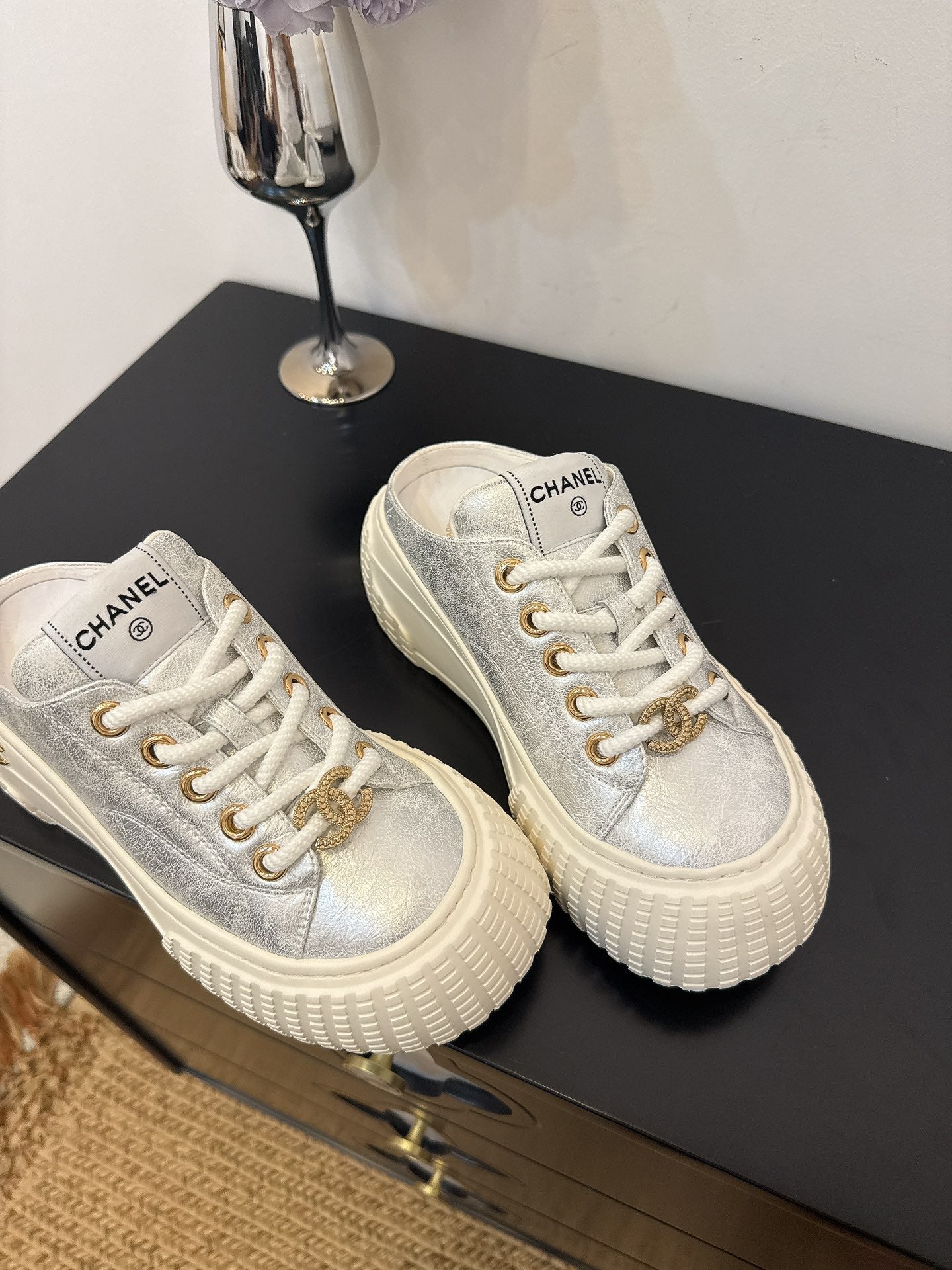 CC 25 Mules Platfrom Silver Lambskin 331632