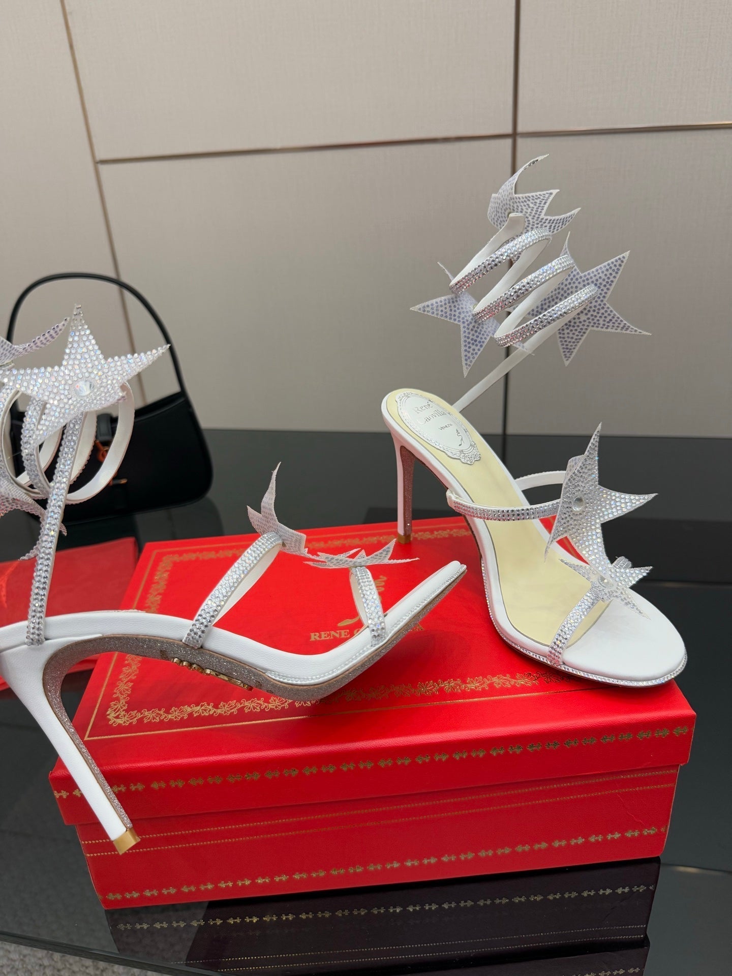 RC Sandals 9.5cm White Rhinestone Silk 302585