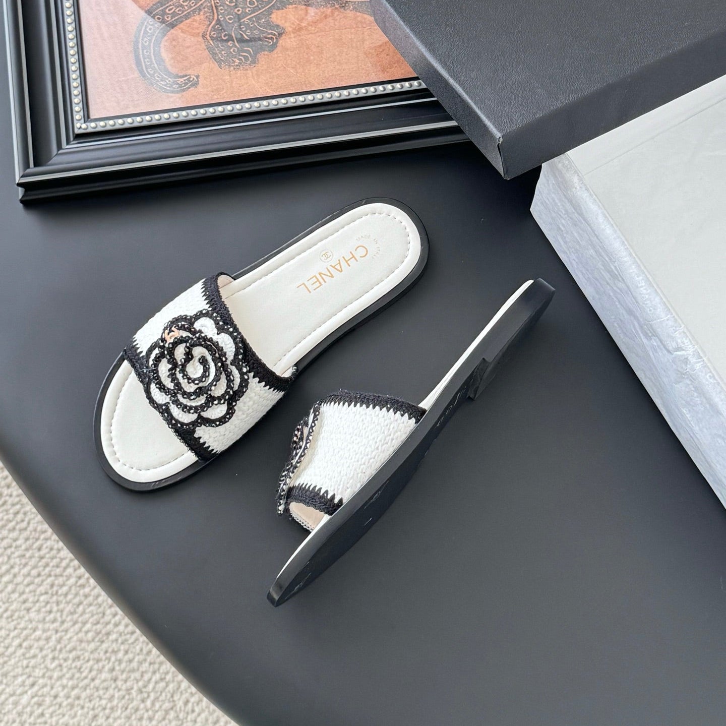CC Chain Strap Thong Slippers Multicolor Cloth Sheepskin Velvet 305867