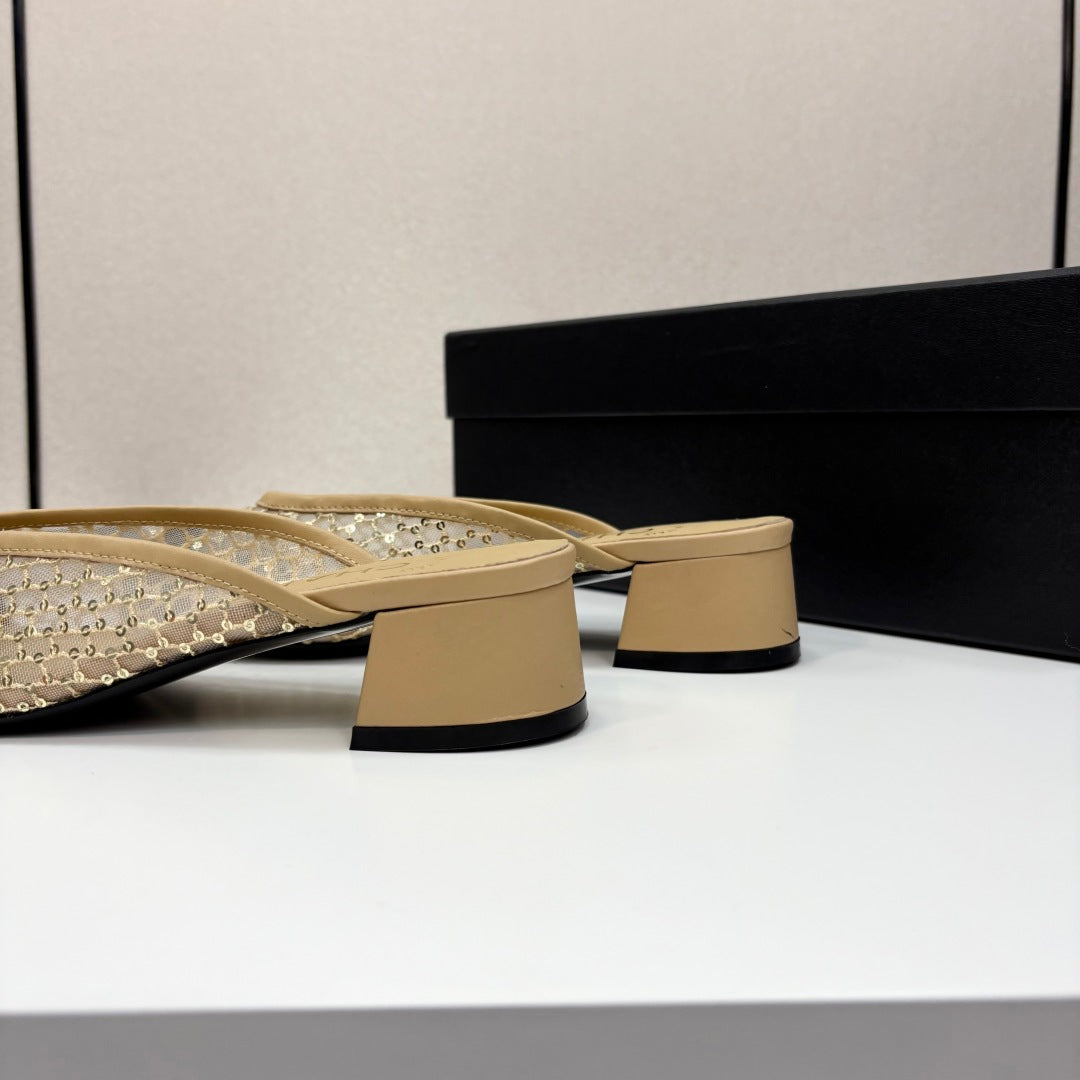 CC 25 Mid Heel Mules Pearl Cord and Lambskin 270775