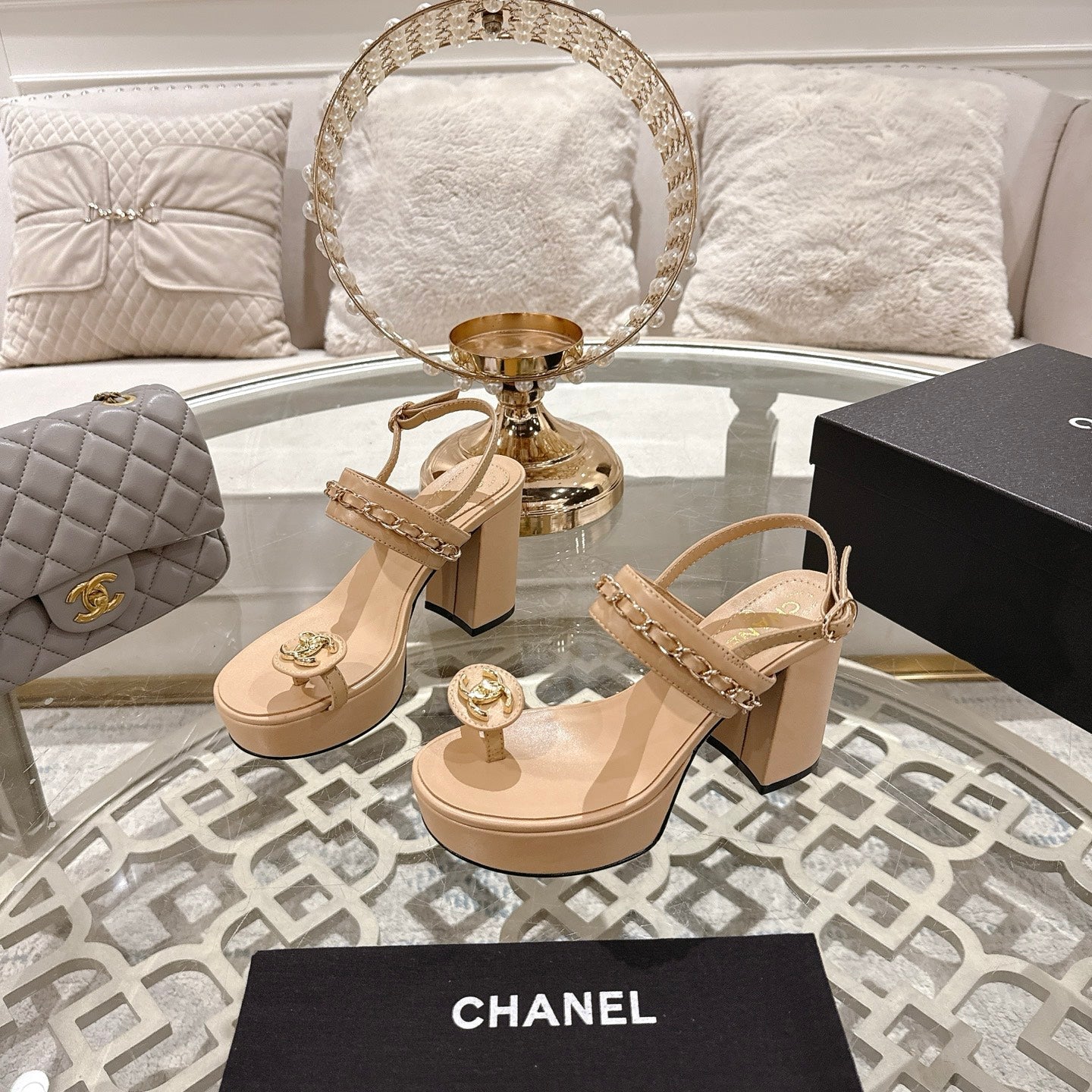 CC 25 Sandal Platform Heels Nude Lambskin 268973