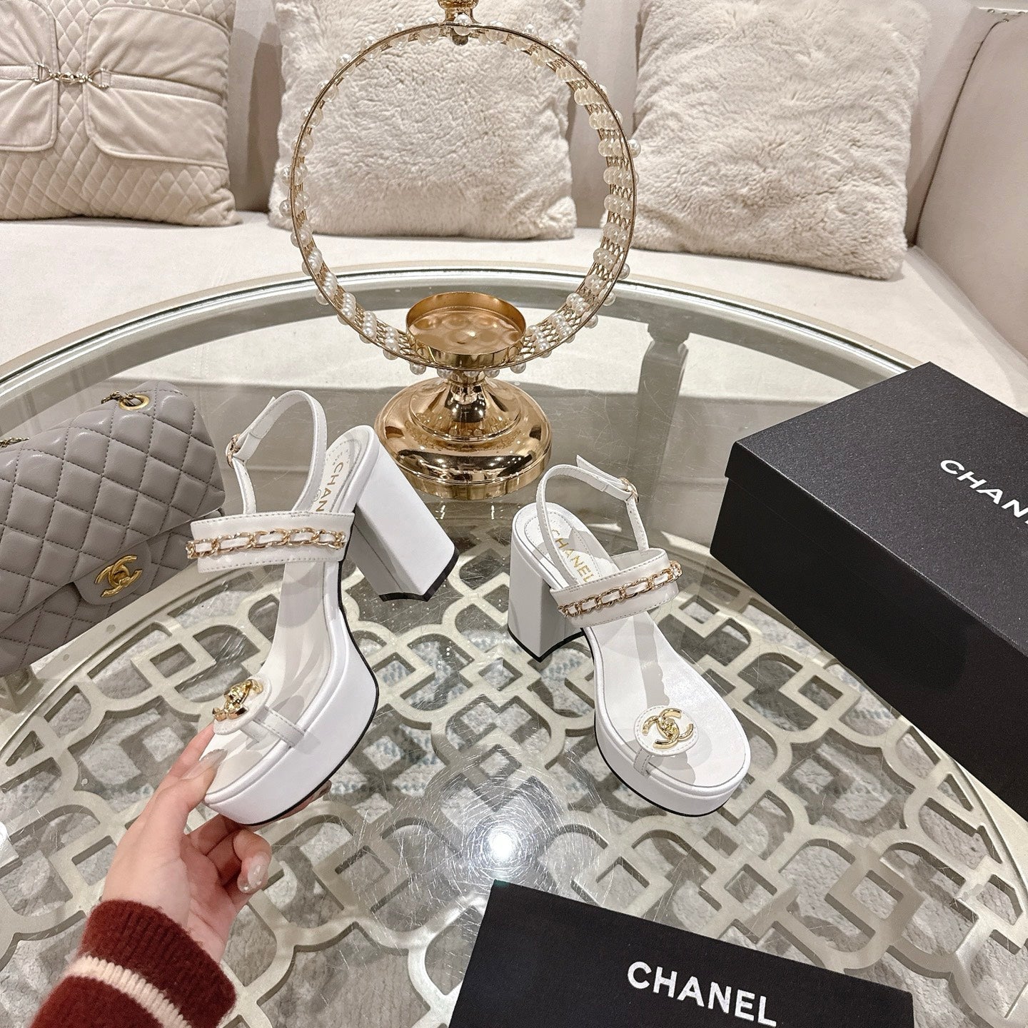 CC 25 Sandal Platform Heels White Lambskin 268974