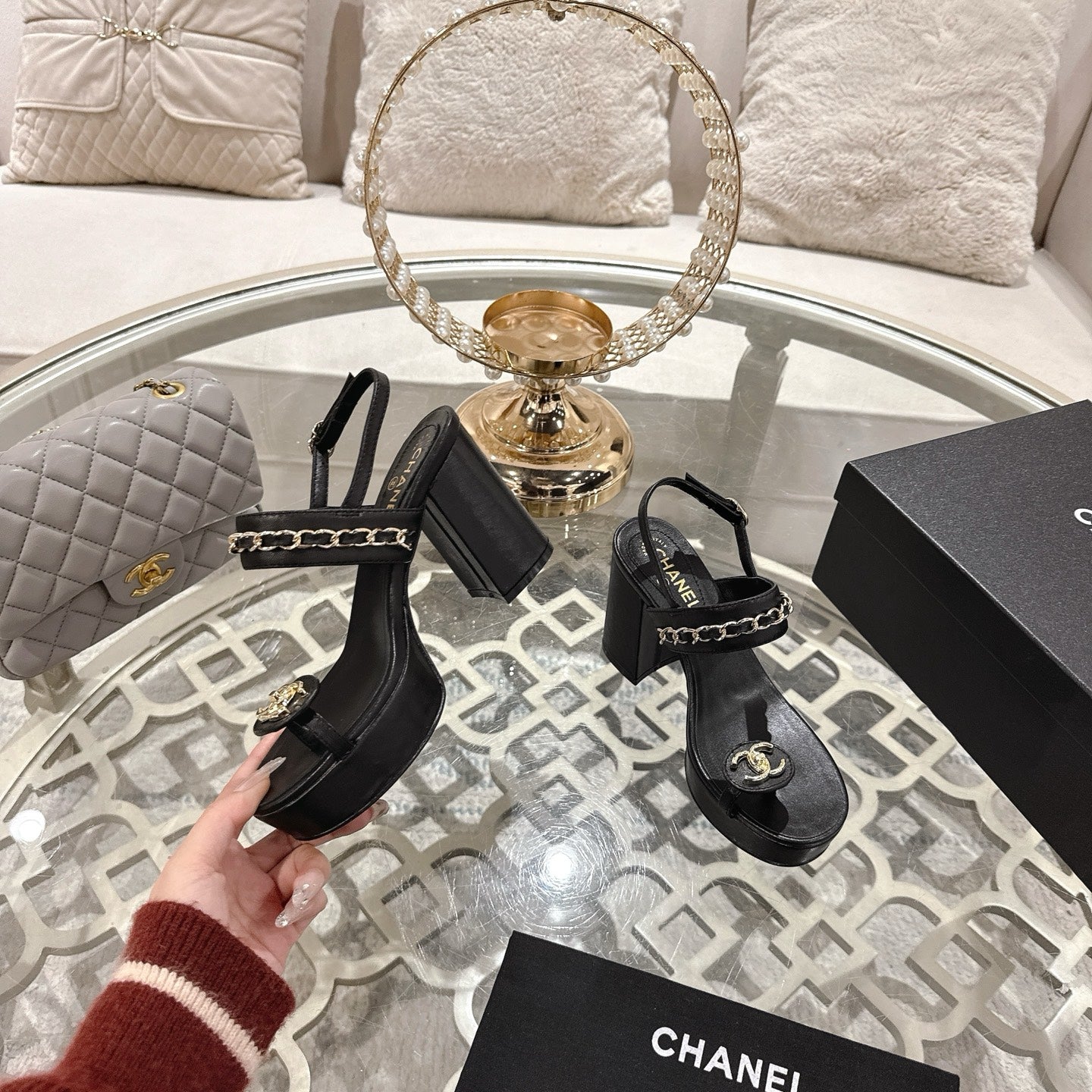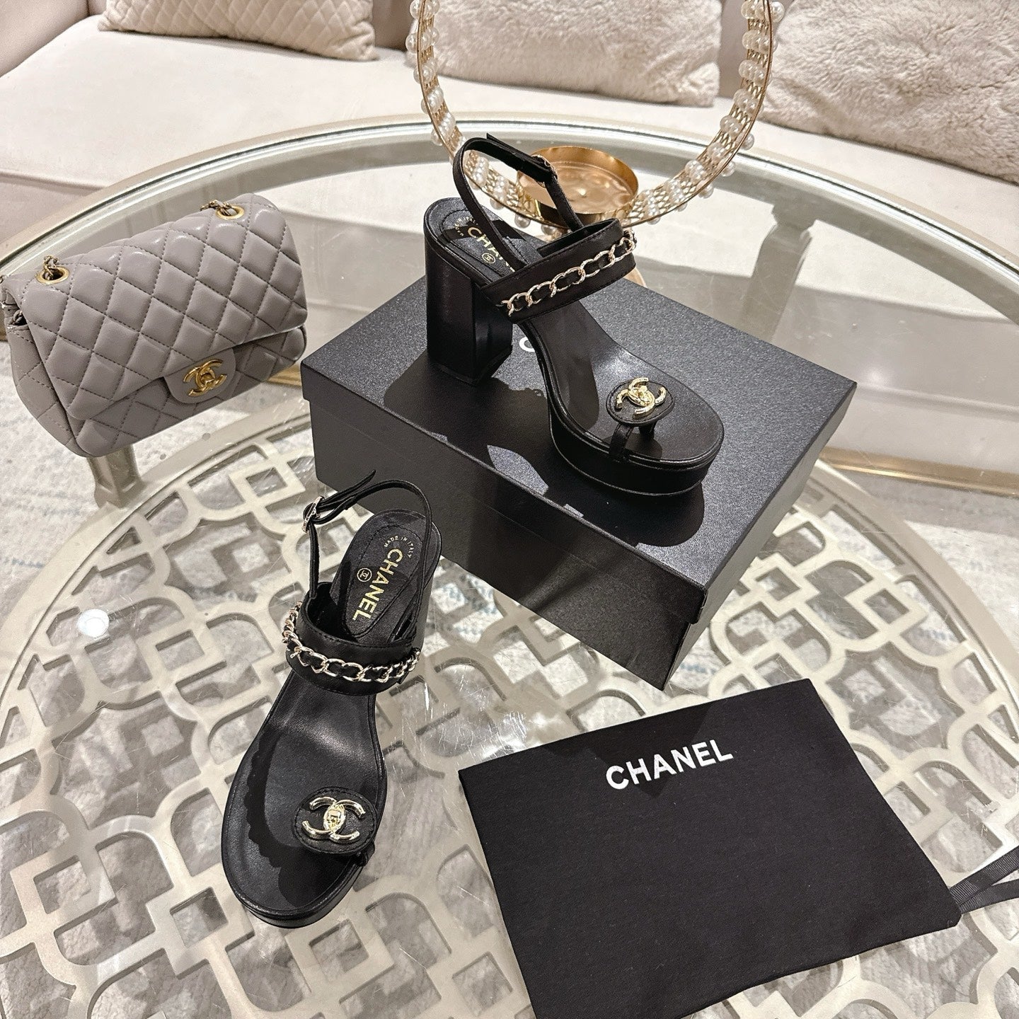 CC 25 Sandal Platform Heels Black Lambskin 268975