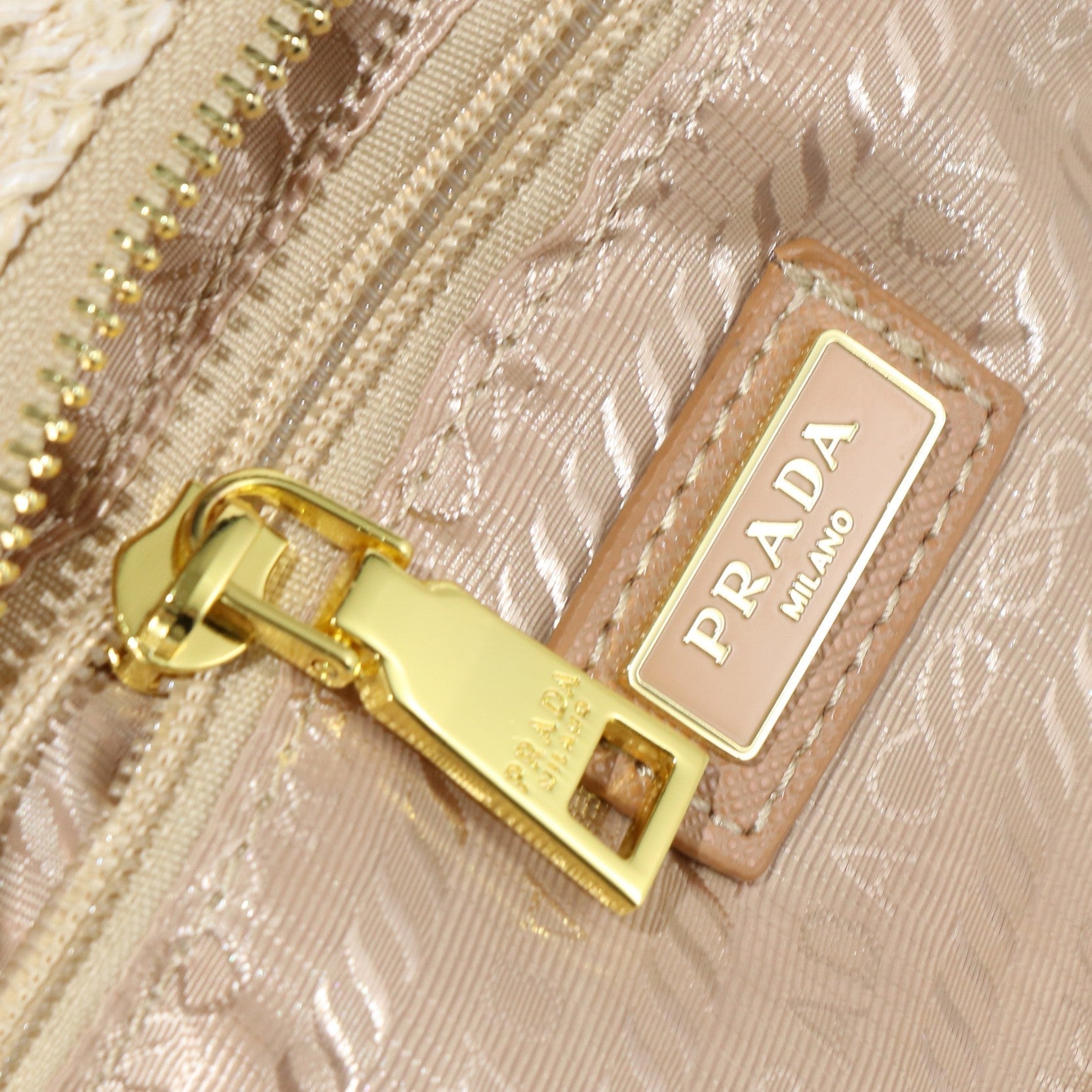 PRA 22 BAG IN BEIGE RAFFIA AND BROWN CALFSKIN GOLD HARDWARE