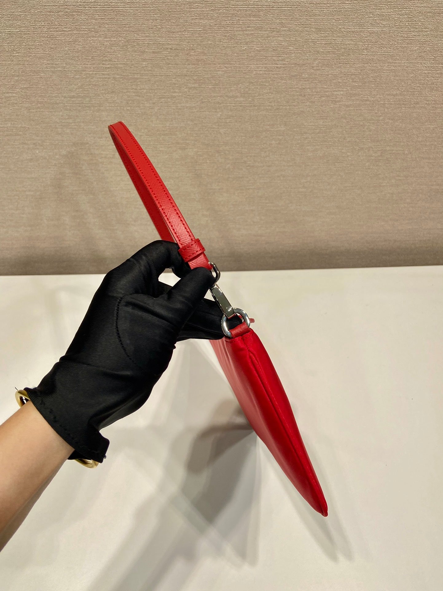 SHOULDER BAG 24 WITH TRIANGLE LOGO IN PASSION RED RE-NYLON FABRIC