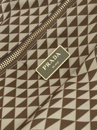 TOTE BAG 33 IN BROWN MIX CREAM TRIANGLE PATTERN EMBROIDERED FABRIC