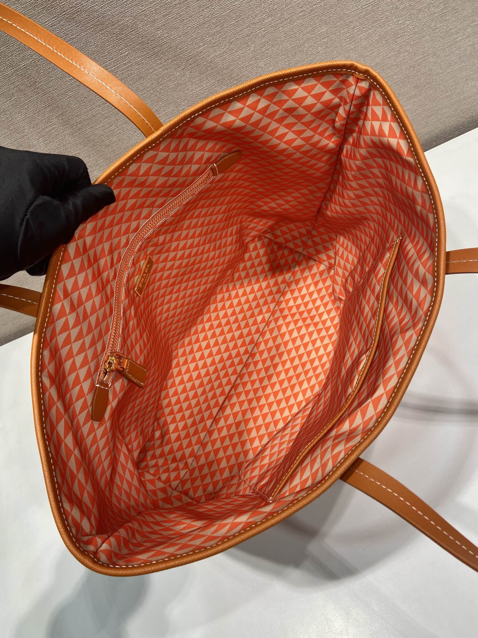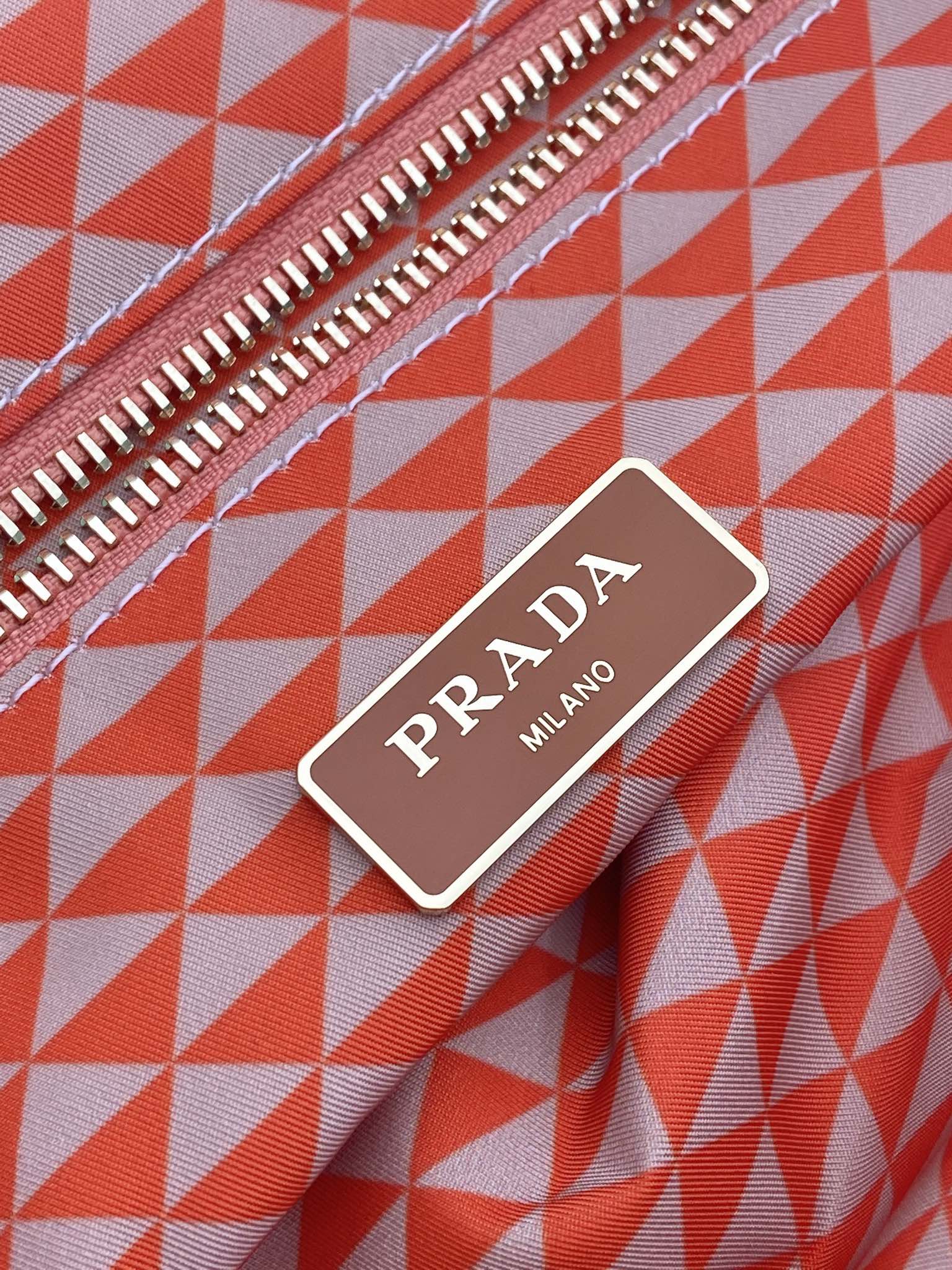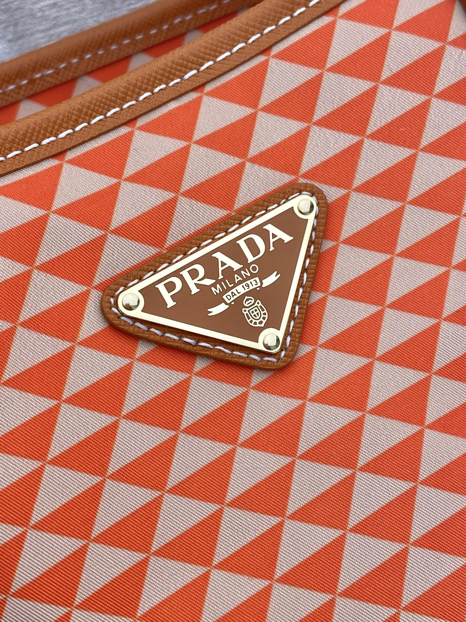 TOTE BAG 33 IN ORANGE MIX WHITE TRIANGLE PATTERN EMBROIDERED FABRIC