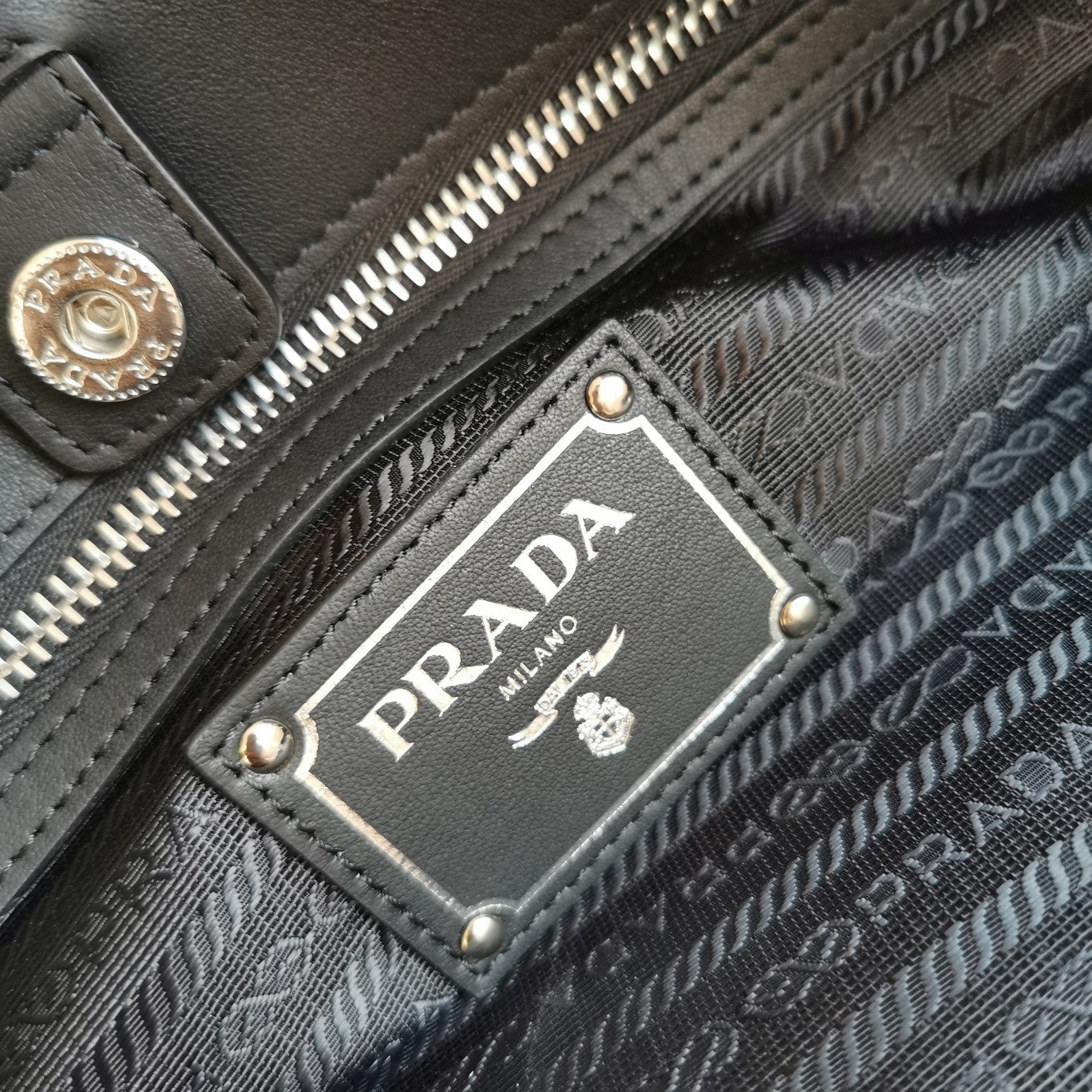 LARGE TOP HANDLE BAG 35 IN BLACK NYLON AND CALFSKIN TRIM