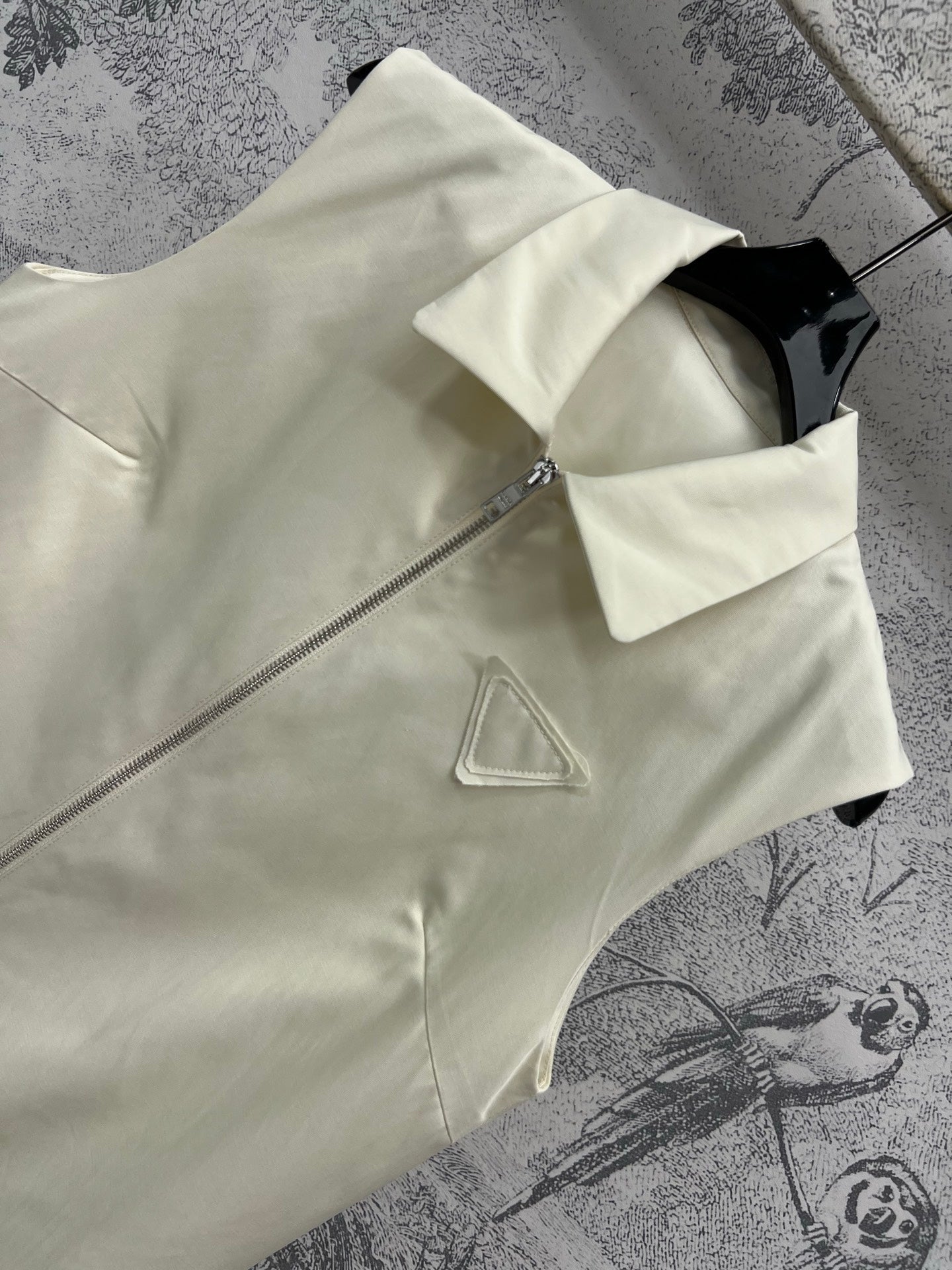 Prada 25 Sleeveless Dress Beige Cotton Polyester