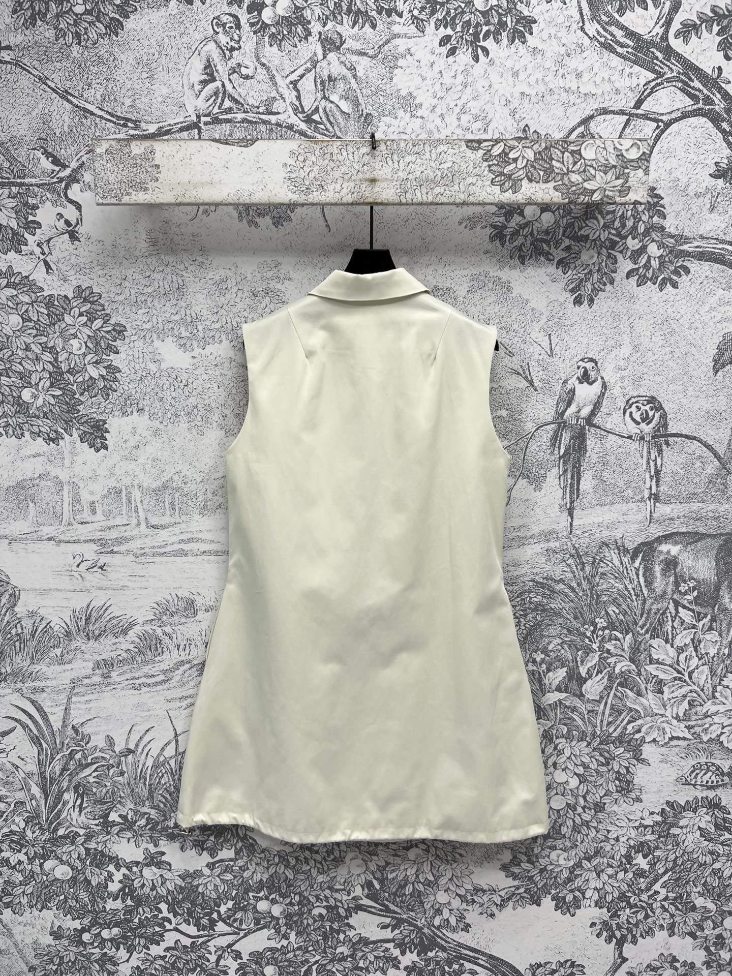 Prada 25 Sleeveless Waist Dress White Cotton Polyester