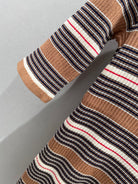 Prada 25 Striped Knitted Polo Short-sleeved Top Brown mix Black Cotton Poliamide 217945