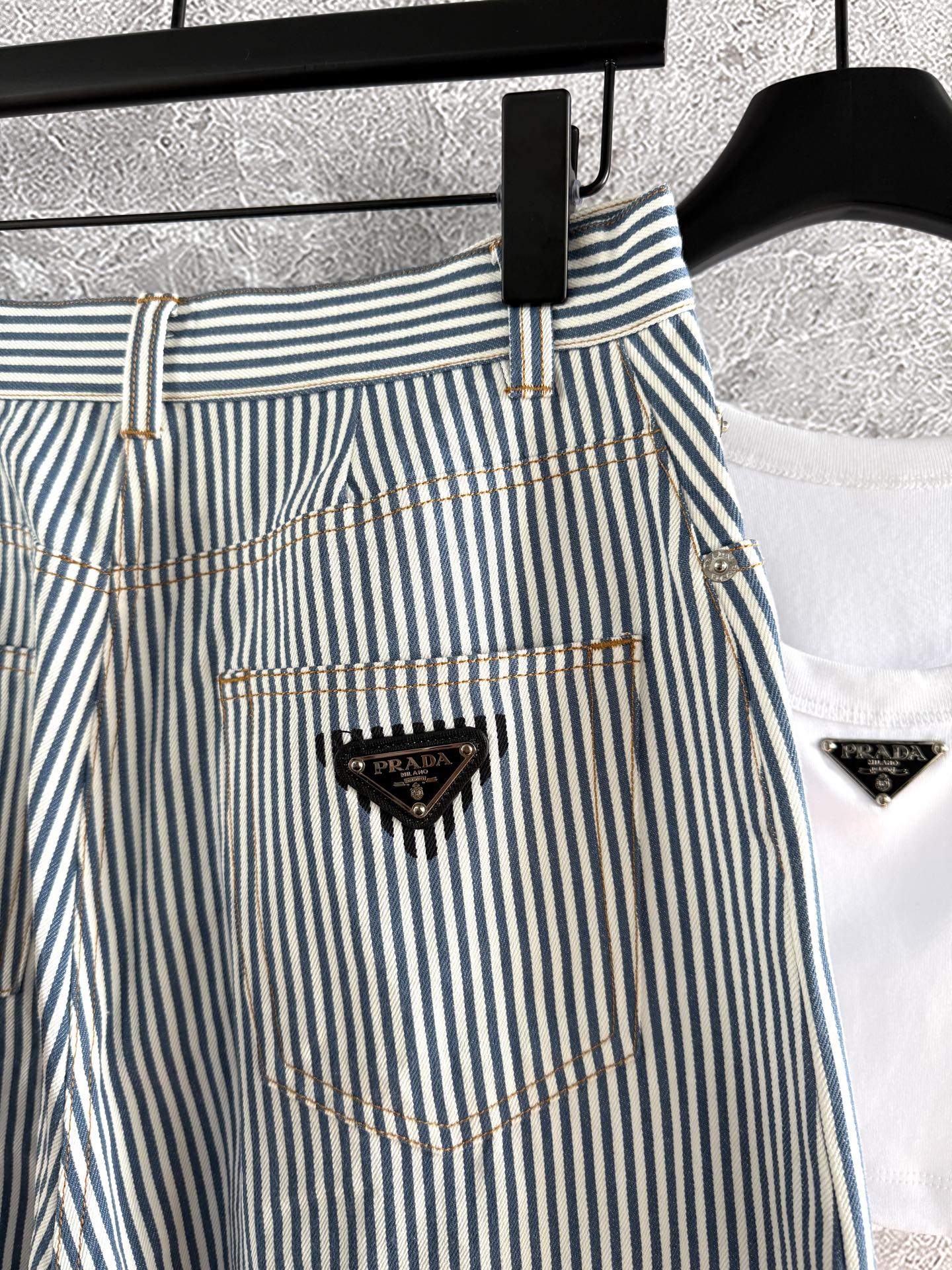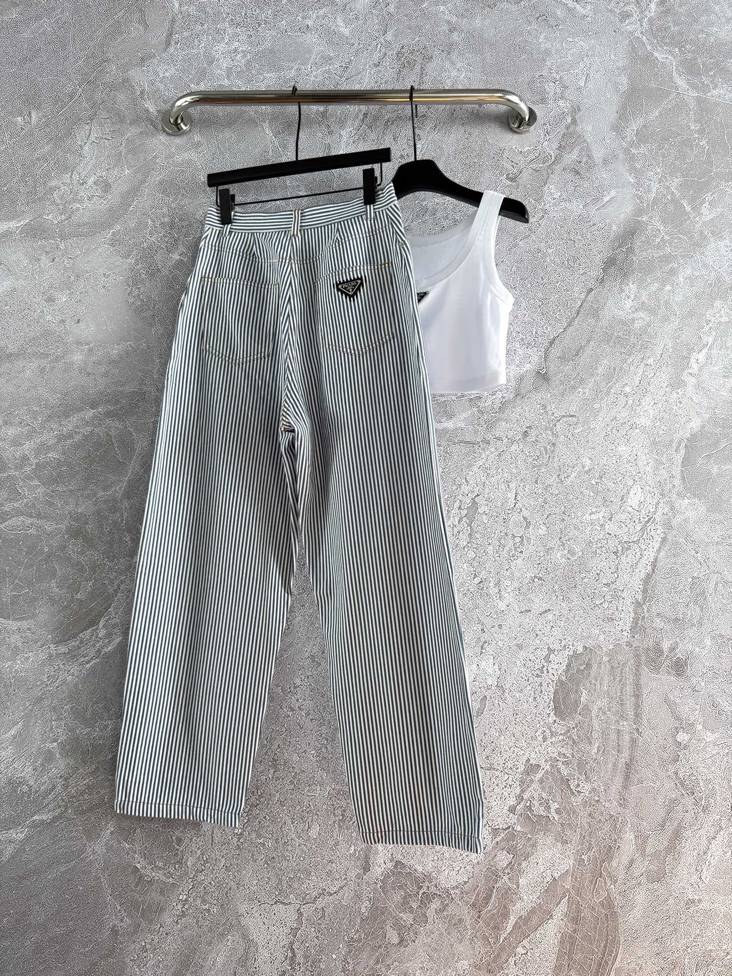 Prada Striped Pants Blue mix White Cotton