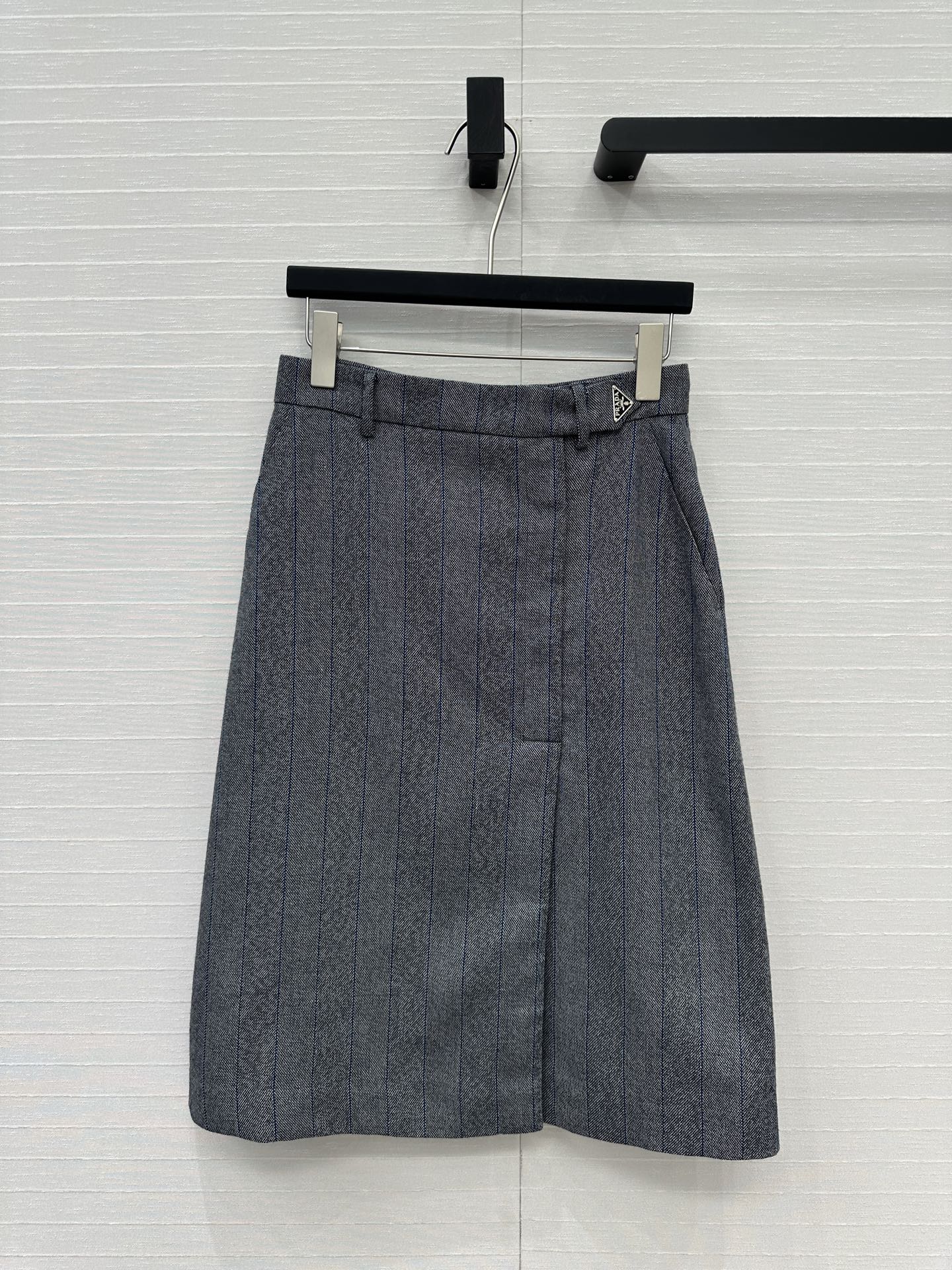 Prada Striped Suit Mid-length Skirt Grey Wool Cotton Polyester