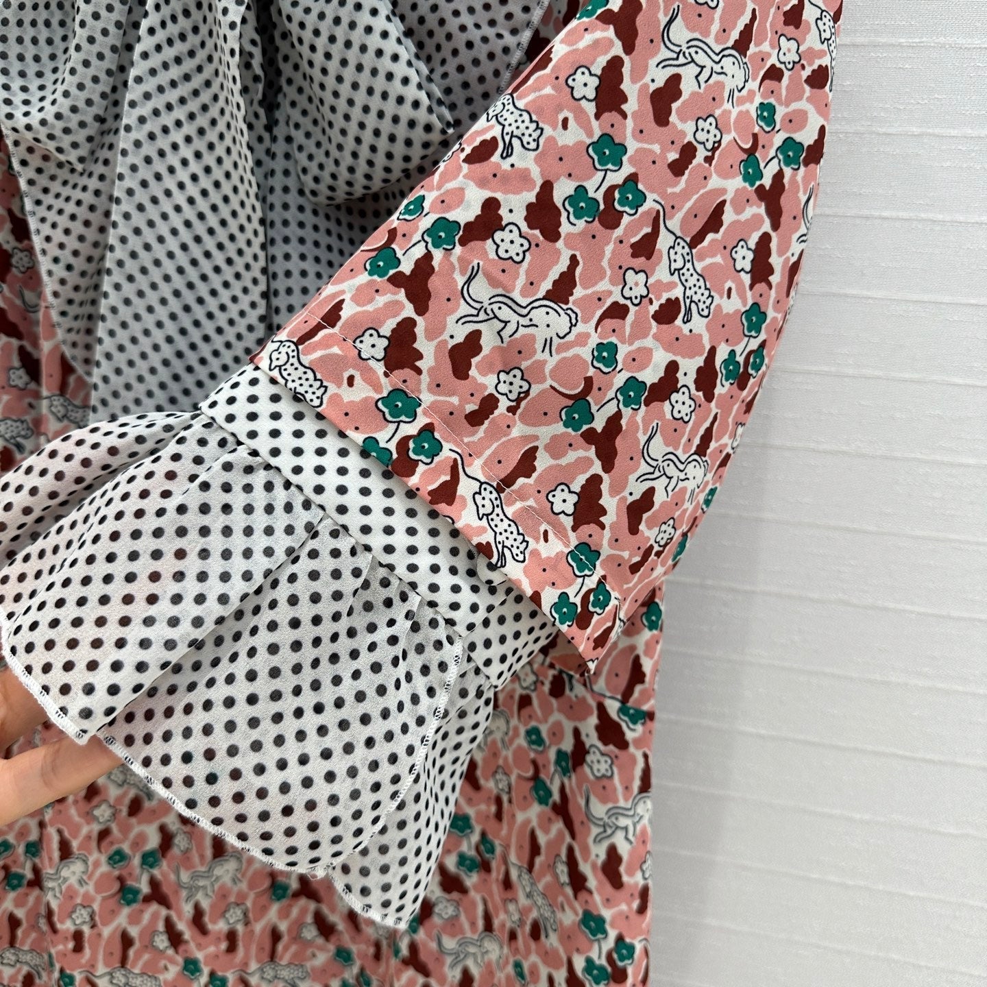 Prada Lace Half-sleeved Dress Pink mix colors Polyester