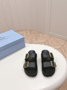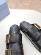 Double Buckle Strap Slides 20 Black Calfskin