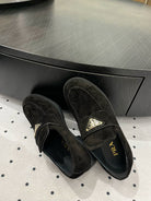 TRIANGLE LOGO LOAFER IN BLACK SUEDE