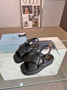 PRA PADDED NAPPA CRISSCROSS SANDALS BLACK LAMBSKIN