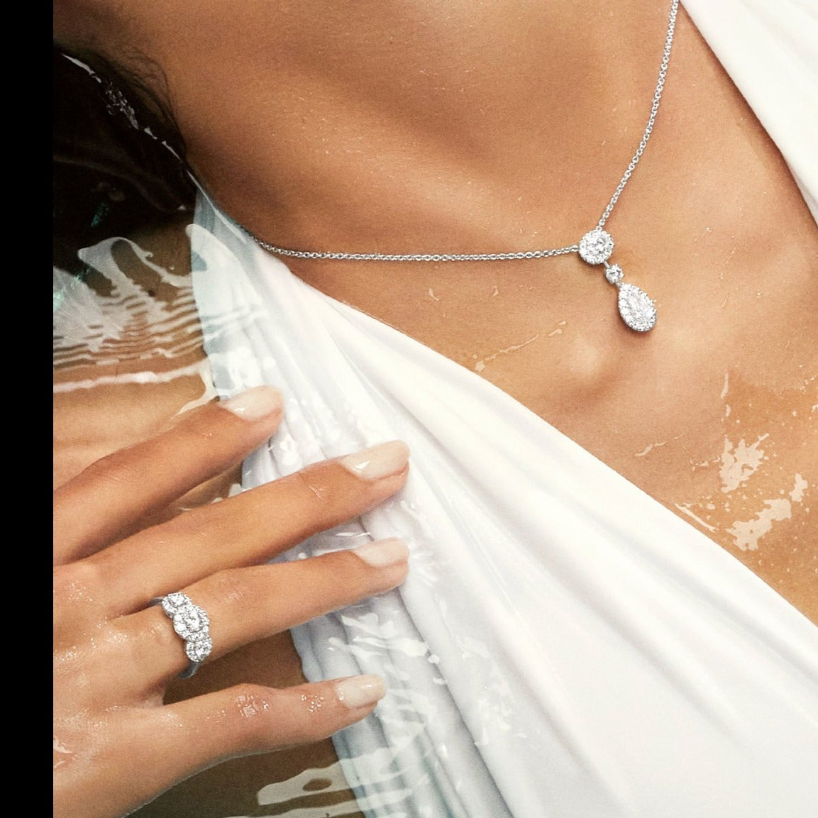 PROMISE PEAR SHAPE SILVER DIAMOND ENGAGEMENT RING