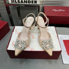 Flower Strass Buckle Slingback Pump 90 Beige Satin