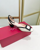 Trompette Metal Buckle Slingback Pump 45 Black White Patent Leather
