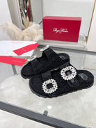 Viv 25 Slidy Diamond Slippers Black PVC Silk Cowhide 259287
