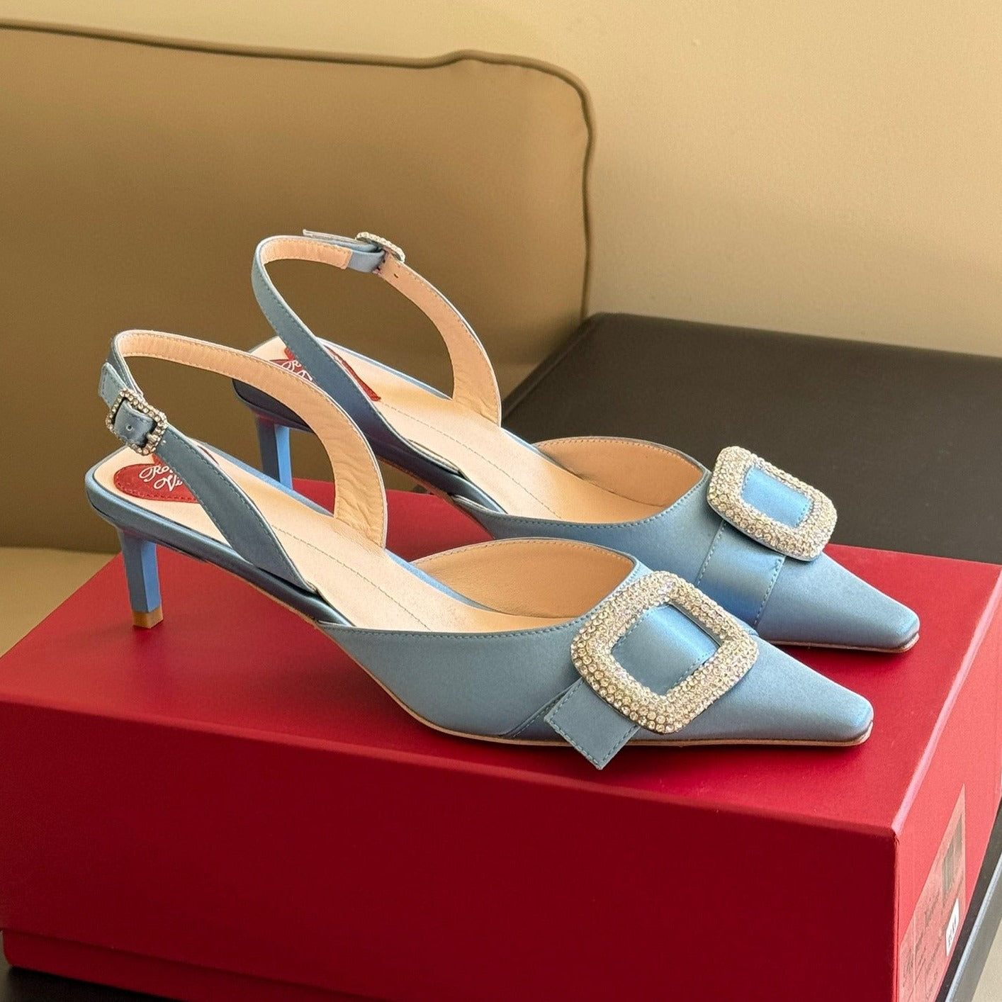 Viv Canard Slingback Pumps 55 in Light Blue Satin