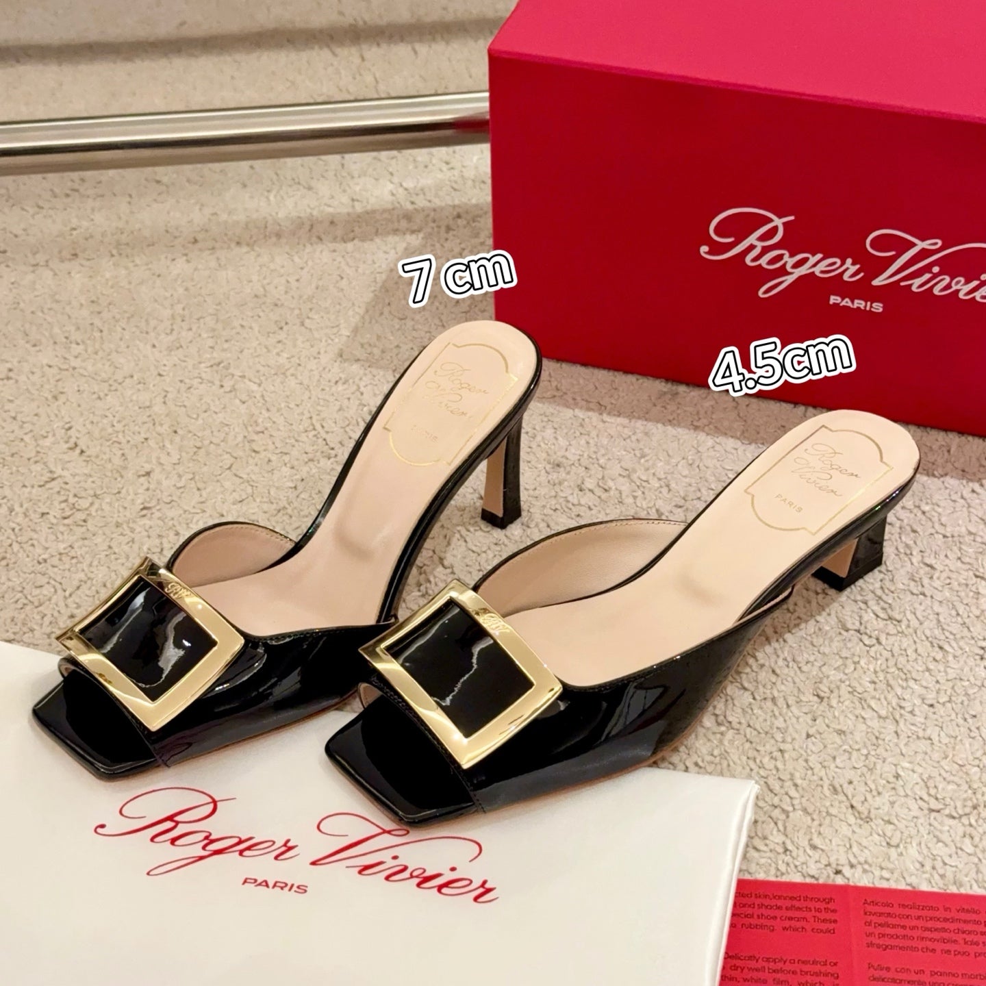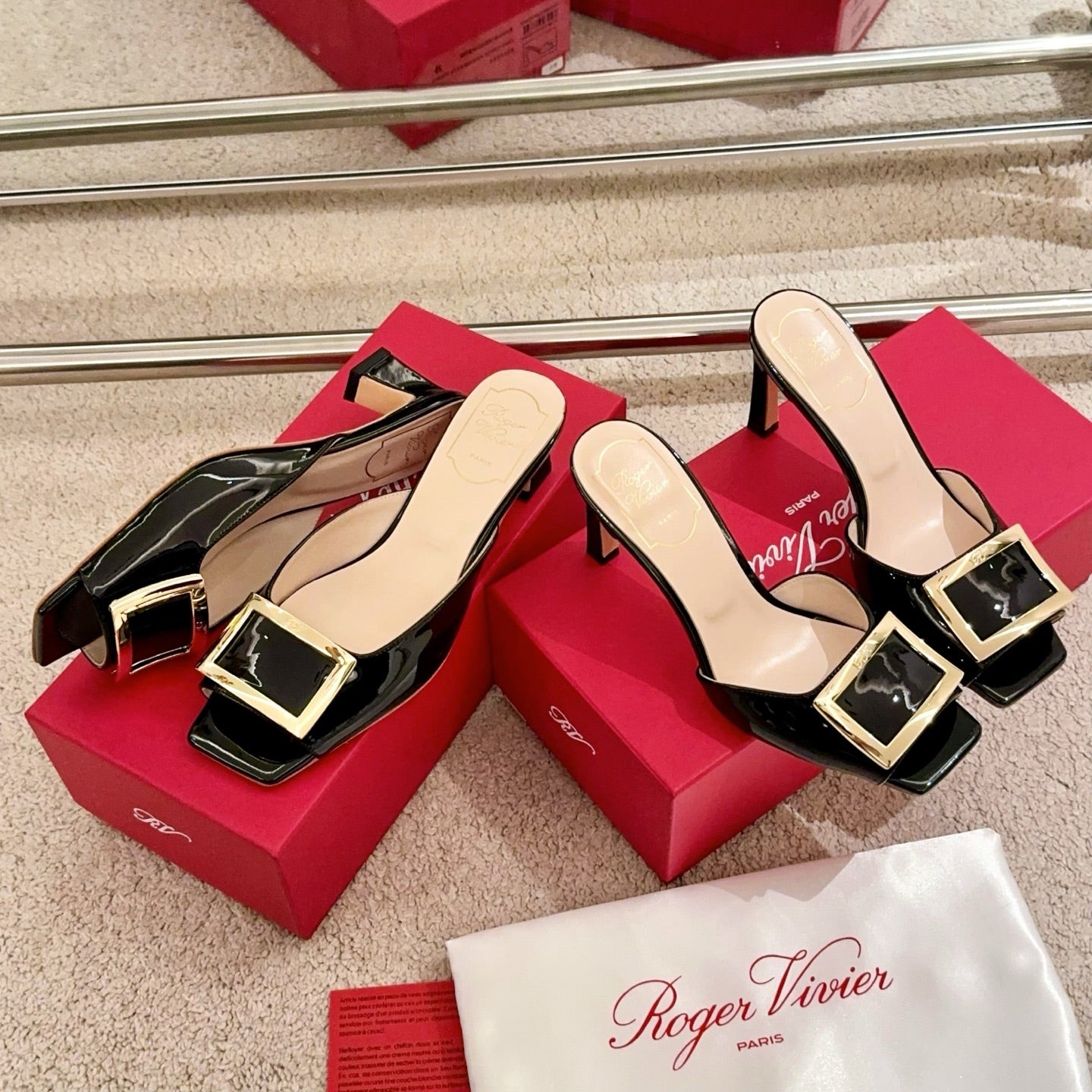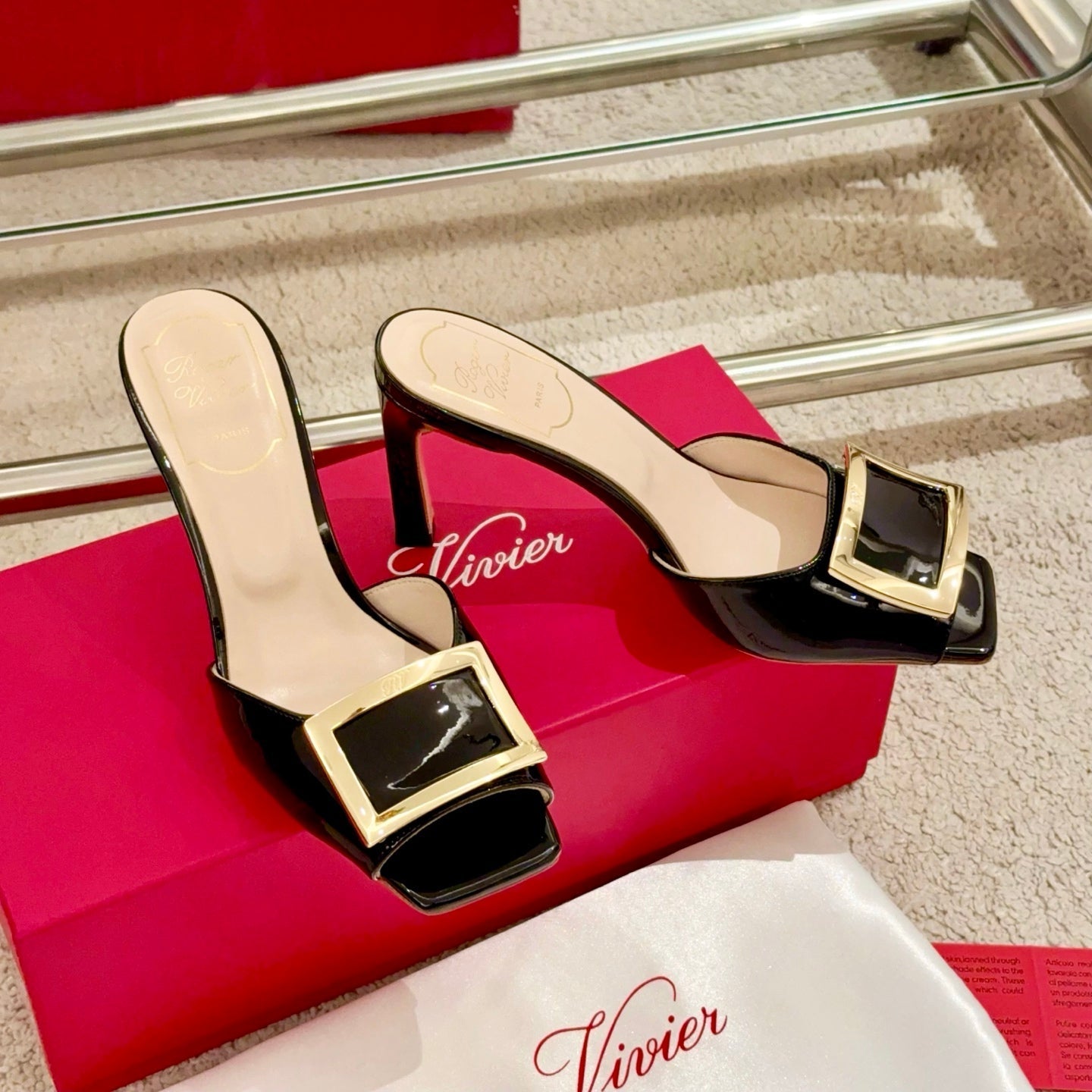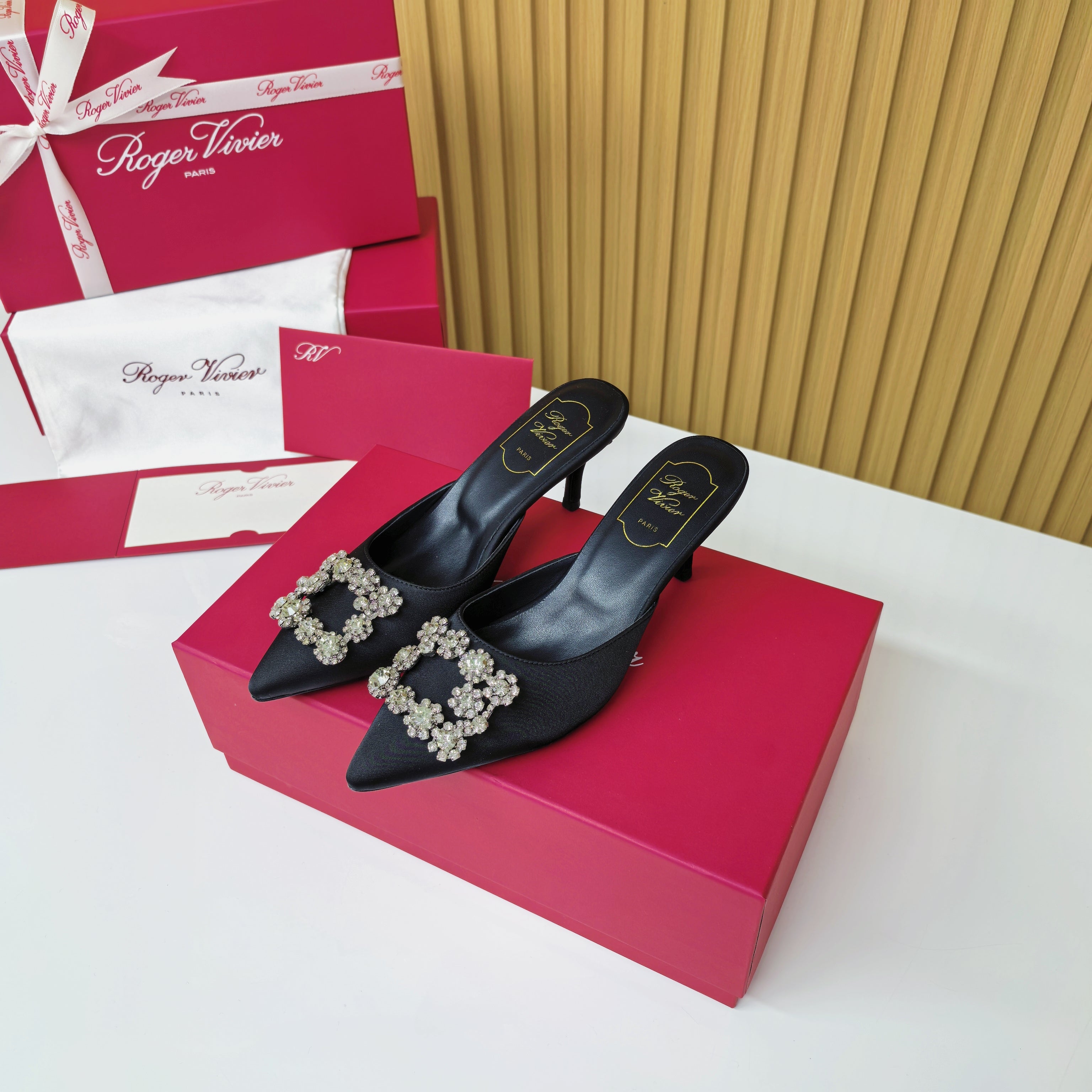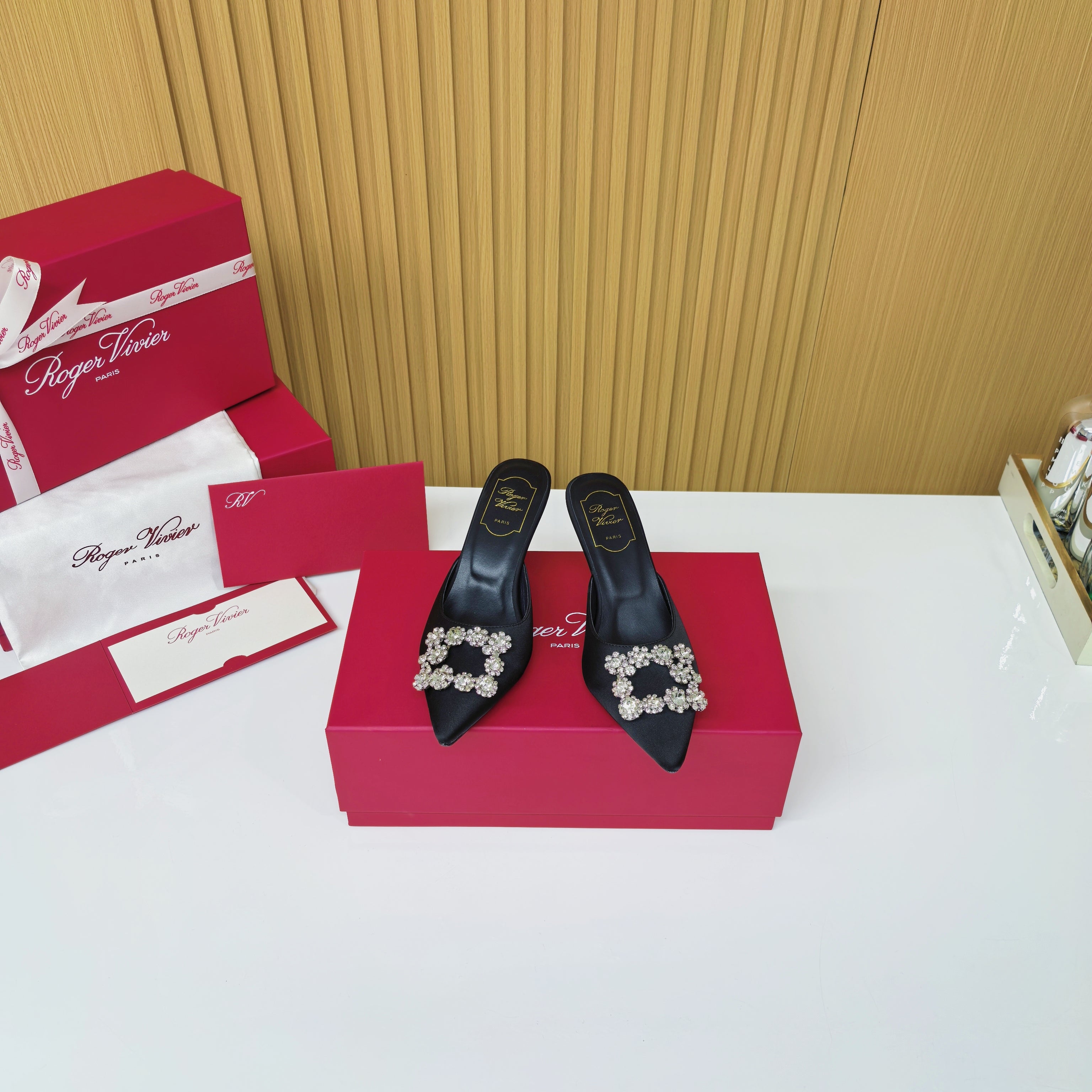 Viv 25 Slidy Diamond Slippers Black PVC Silk Cowhide 259287