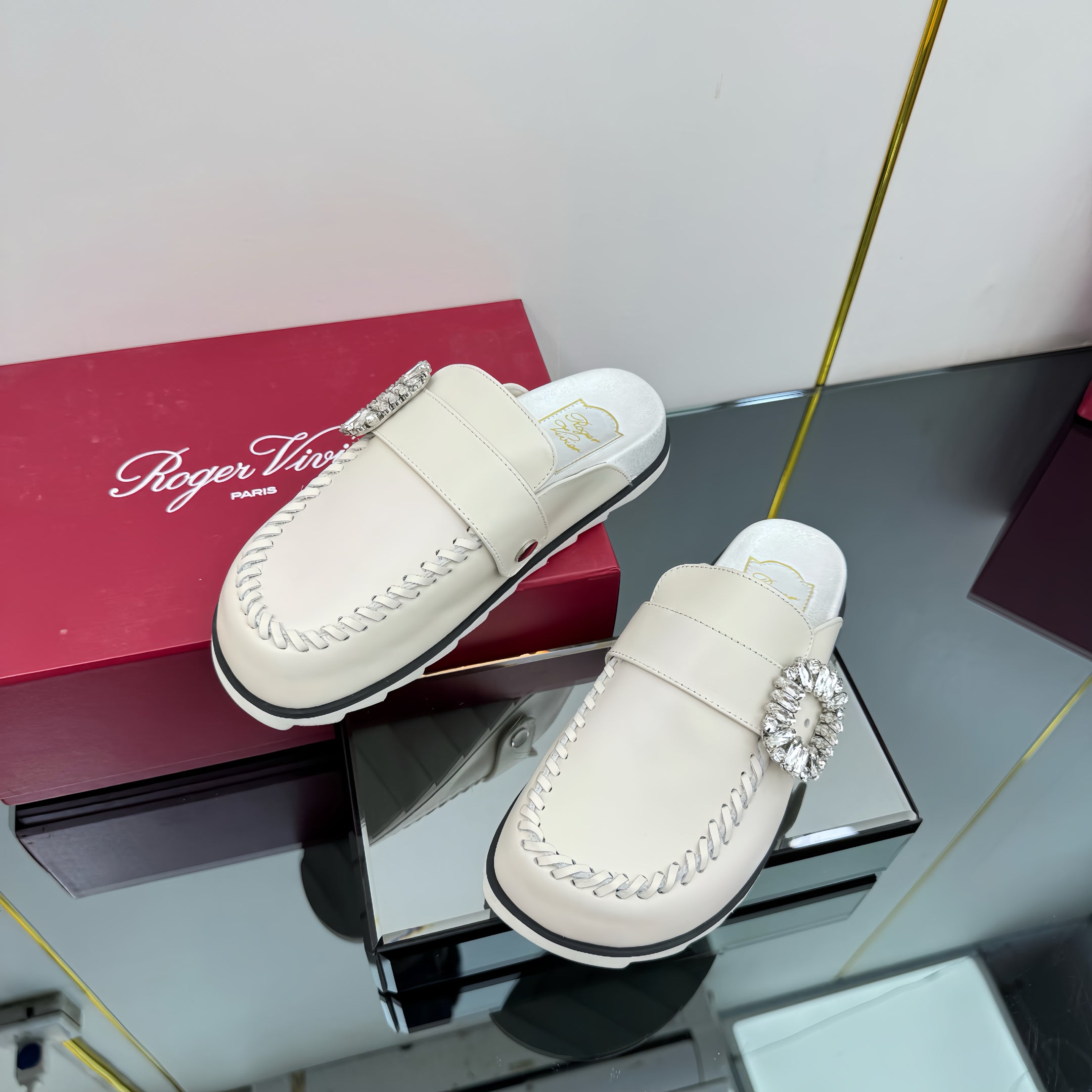 Viv Retro Modern Mules Milky White Cowhide Leather 261718