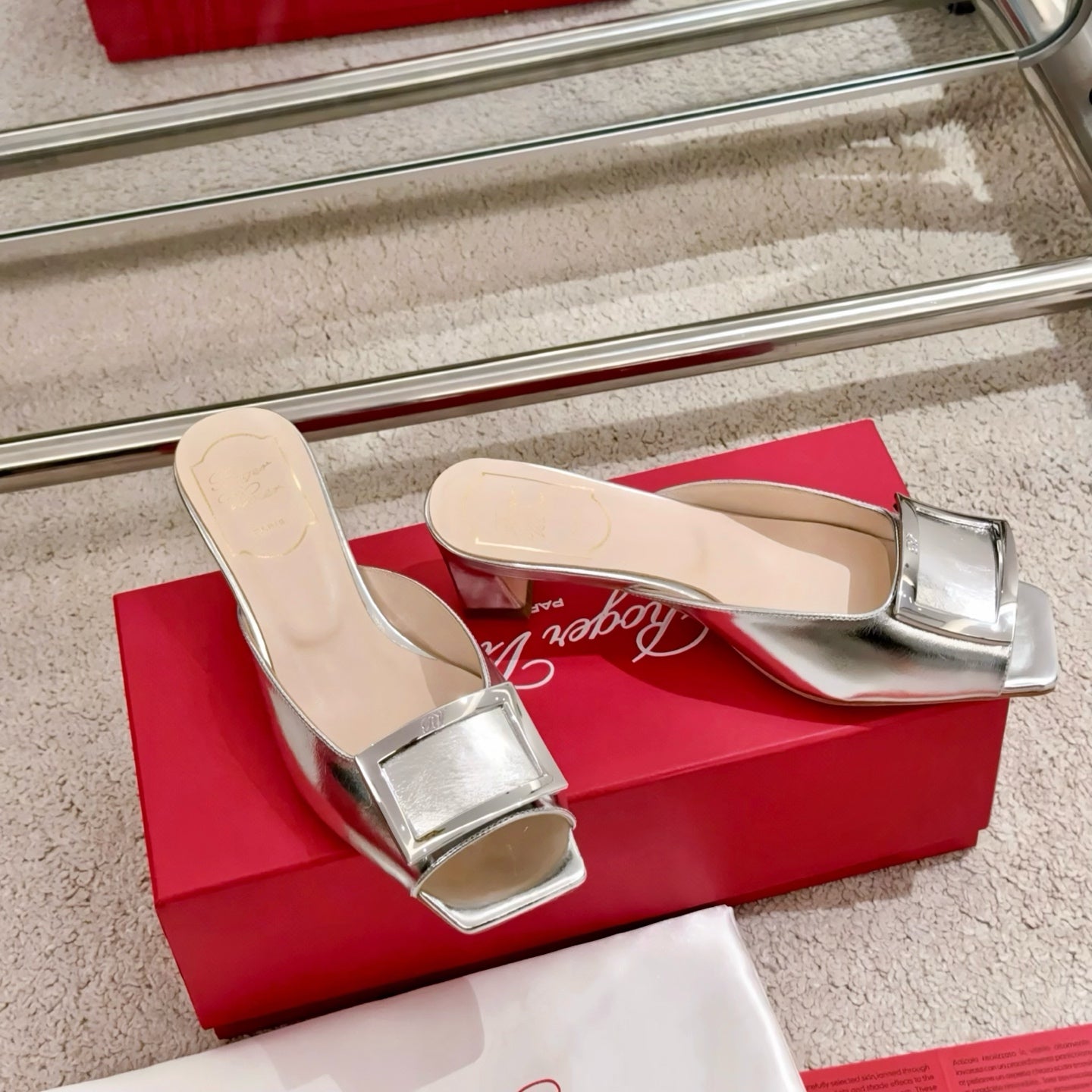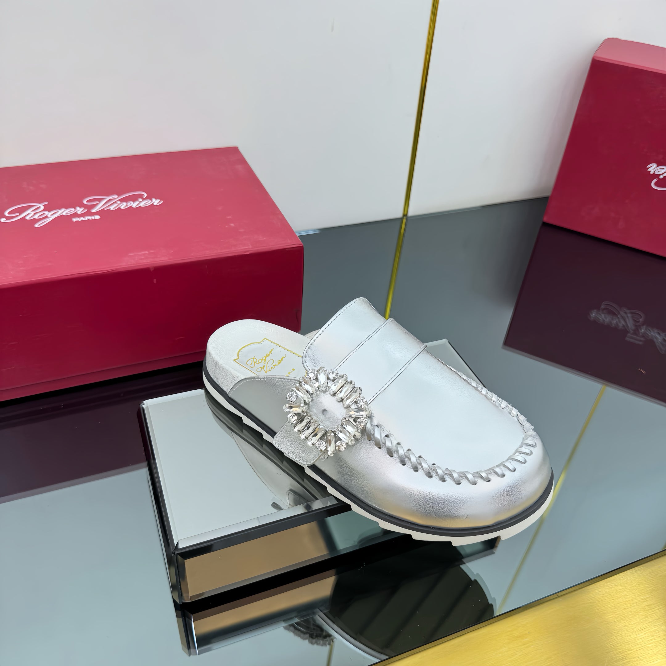 Viv Retro Modern Mules Silver Cowhide Leather 261719