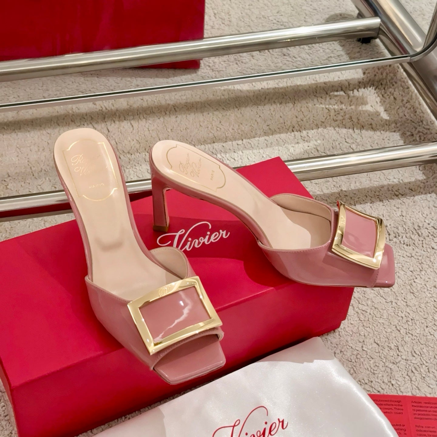 Viv Retro Modern Mules Pink Cowhide Leather 261717