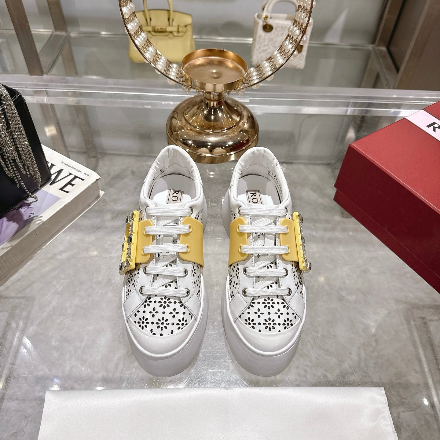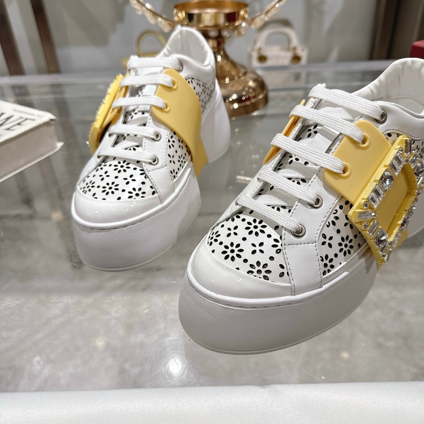 Viv 25 Square Buckle Platform White Yellow Cowhide 262976