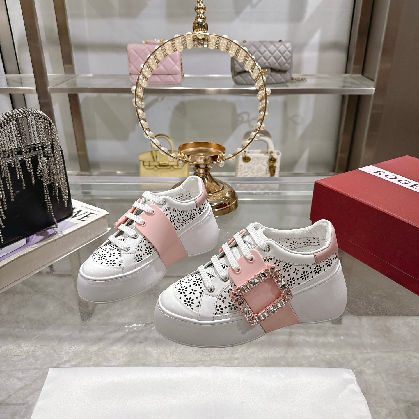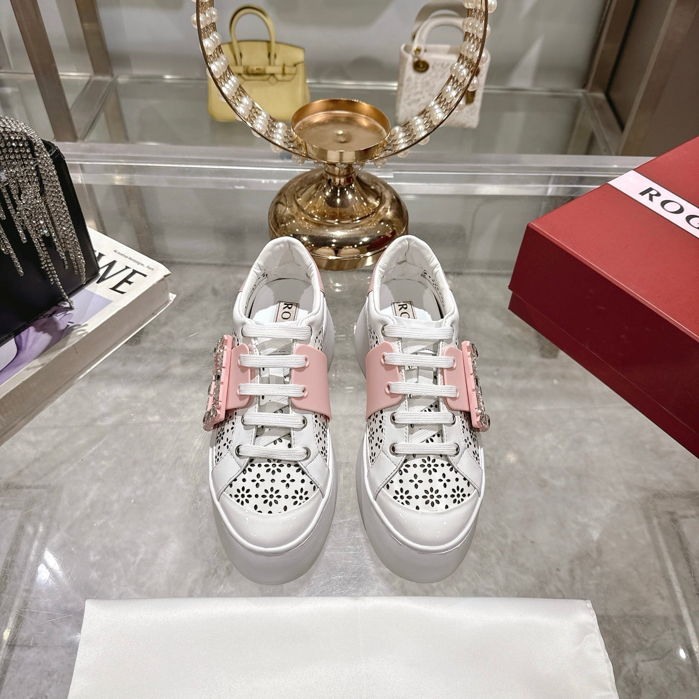 Viv 25 Square Buckle Platform White Pink Cowhide 262980