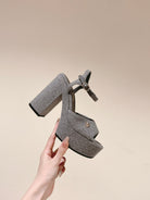 CC HIGH SANDAL GREY SUEDE CALFSKIN