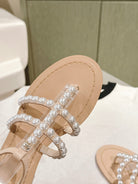 CC SANDALS PEARL ROMAN IN ALMOND BEIGE LAMBSKIN