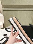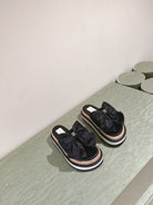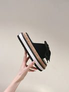 CC SLIPPERS WITH SILK BOW IN BLACK COWHIDE