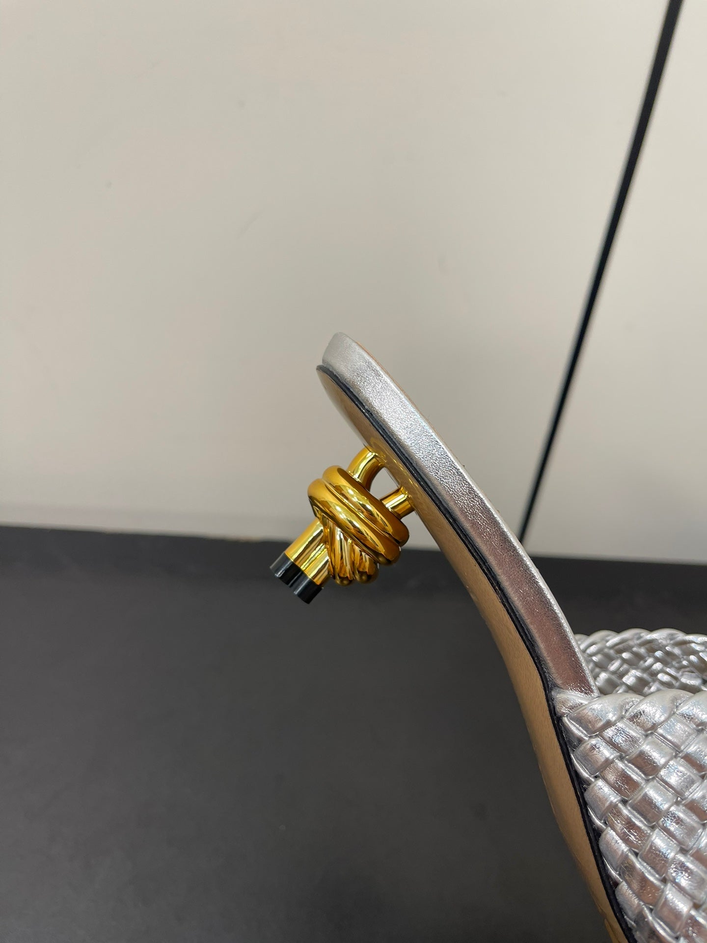 knot mule 55 silver metalic lambskin