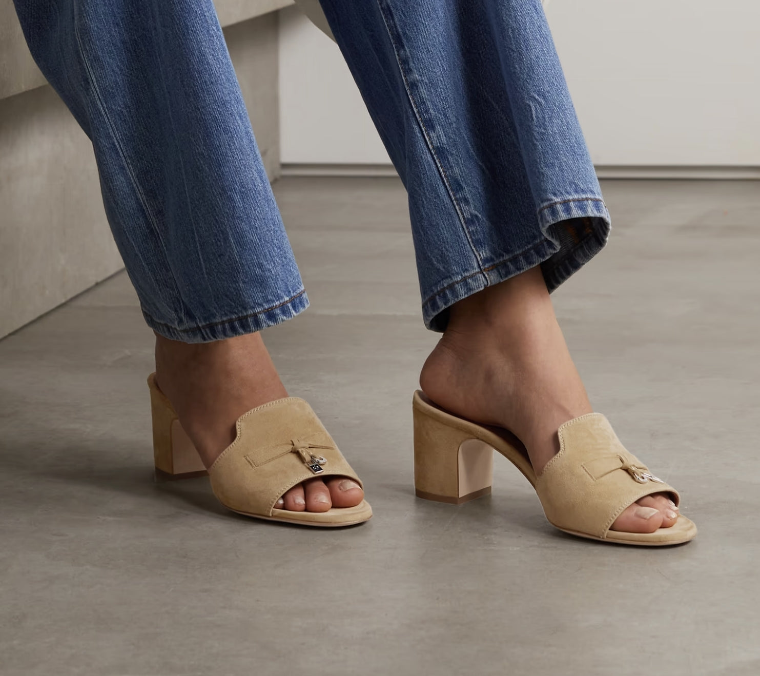 Loro Piana Beige White Suede Charms Walk Flat Mules