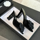 mule sandal flower high heel 80 black suede