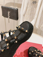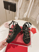 Rockstud Ankle Strap Wedge Sandal Calfskin Black 10cm