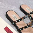 VT 25 Rockstud leather slides Black Sheepskin 289663