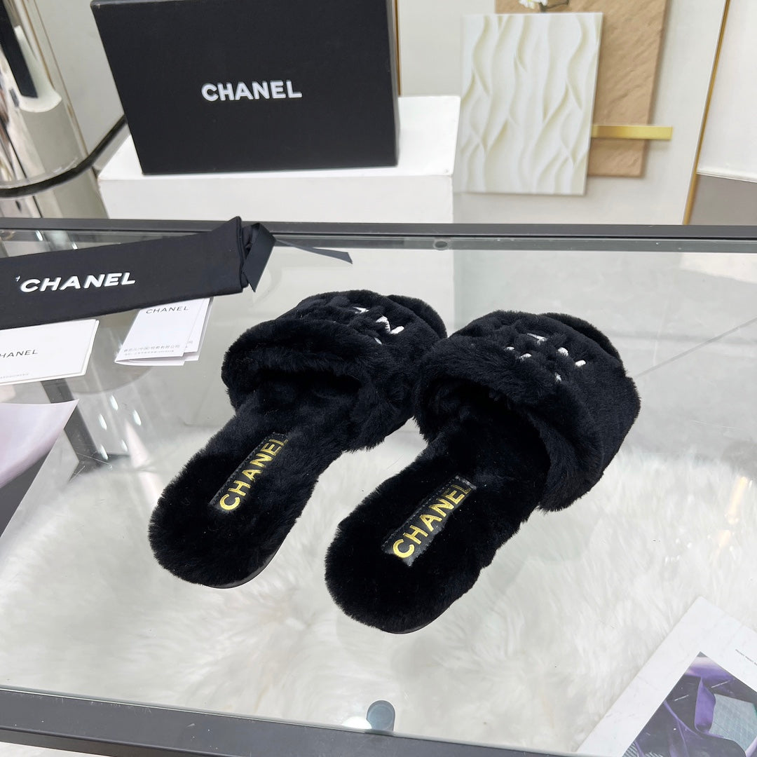 CC SLIPPERS IN BLACK MIX WHITE FLEECE